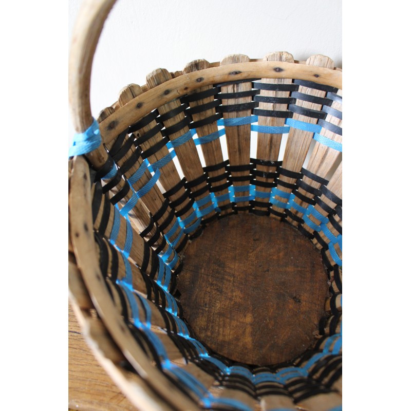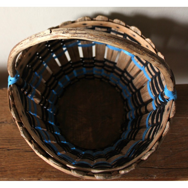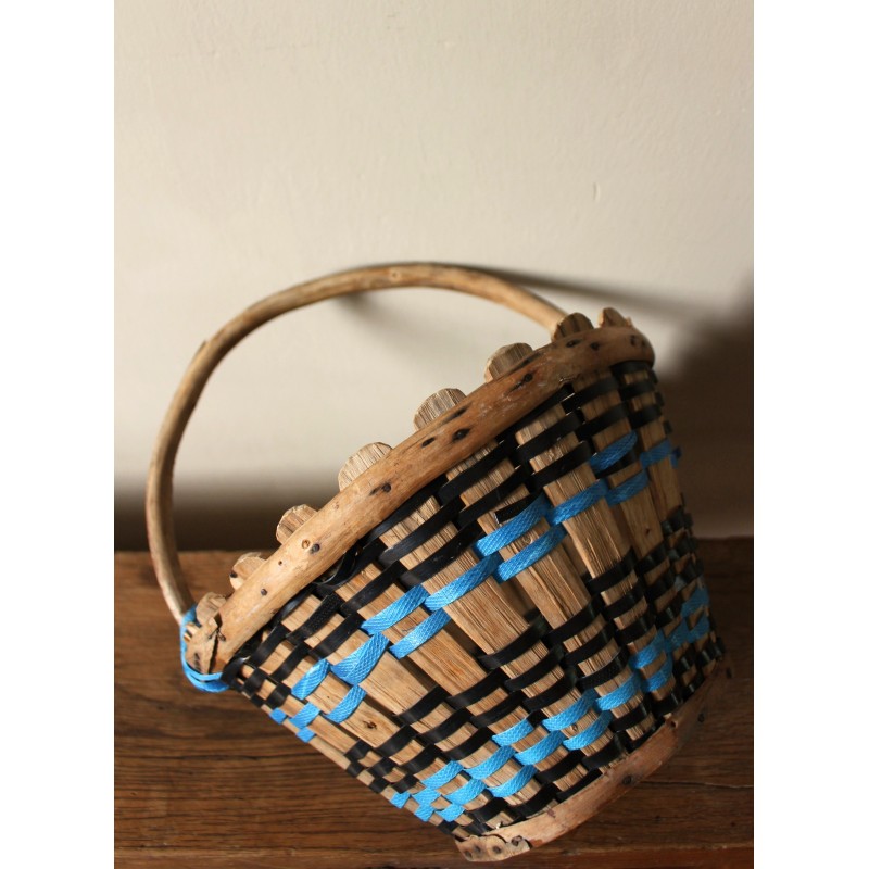 Panier en bois anse ronde vintage tressage bleu noir vintage
