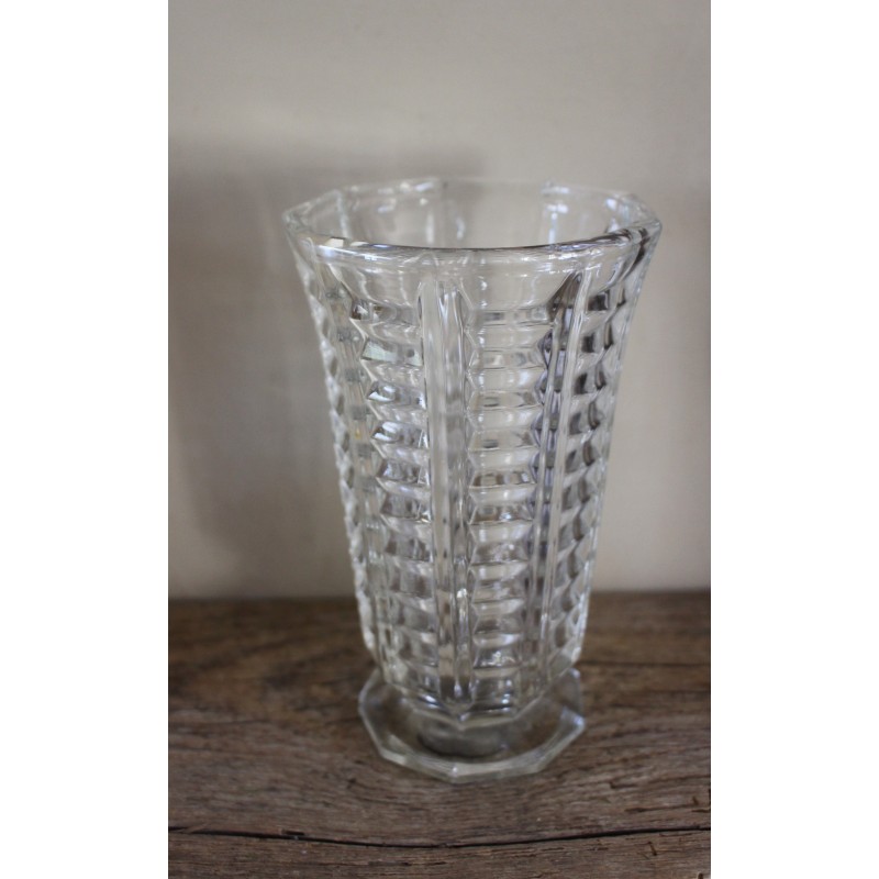 Vase sur pied en Verre ciselé transparent