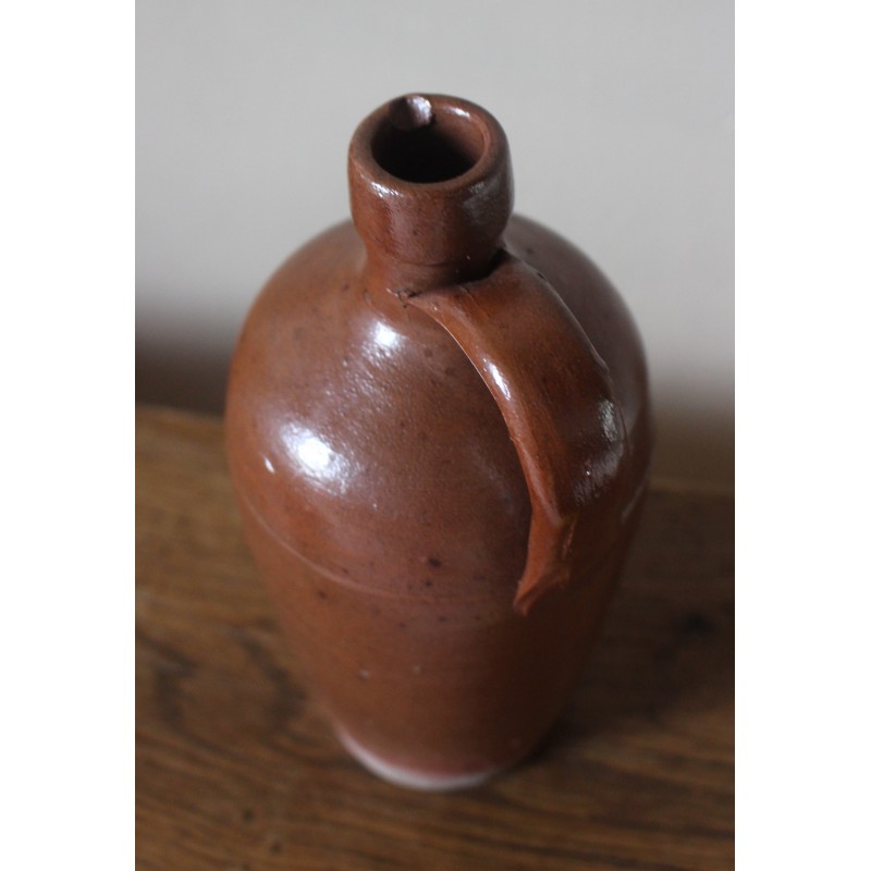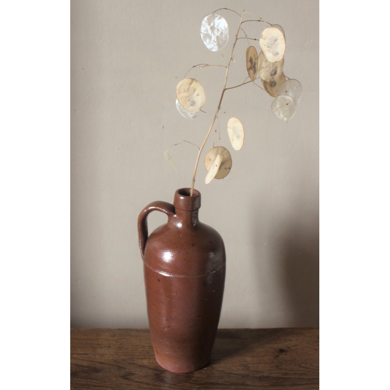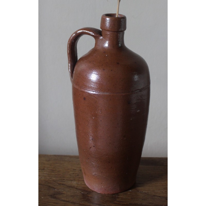 Bouteille en grès Belle pièce Vintage artisanale Ancien contenant à liqueur Marron Très bon état h 22,6 x c 11 cm Anse et bec verseur Détournement à souhait Fleurs séchées, déco, collection, accumulation, selon vos envies.