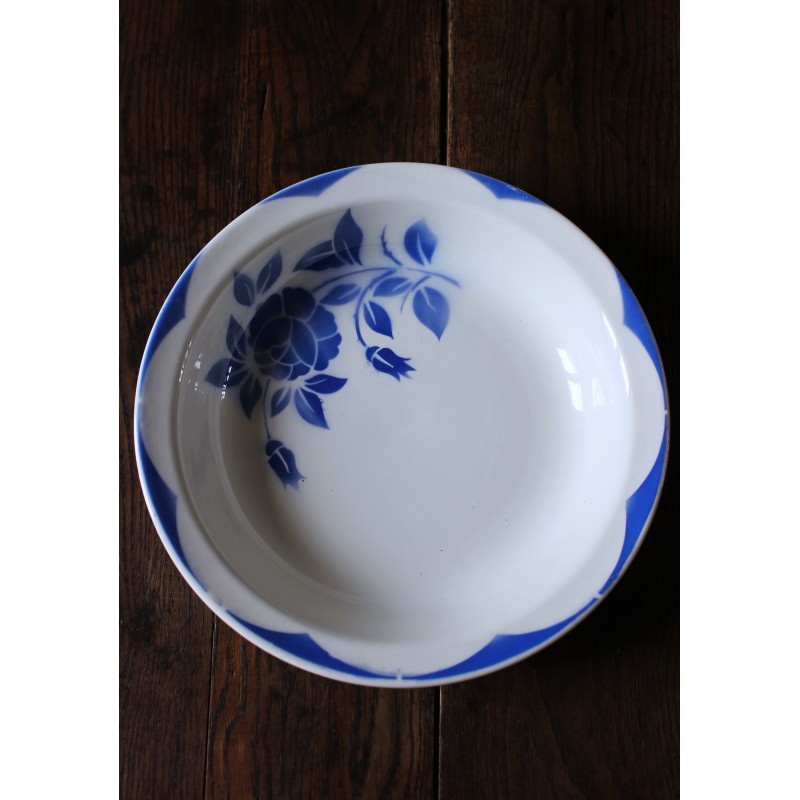 Plat rond creux Corsica Digoin Sarreguemines Bleu Art Deco