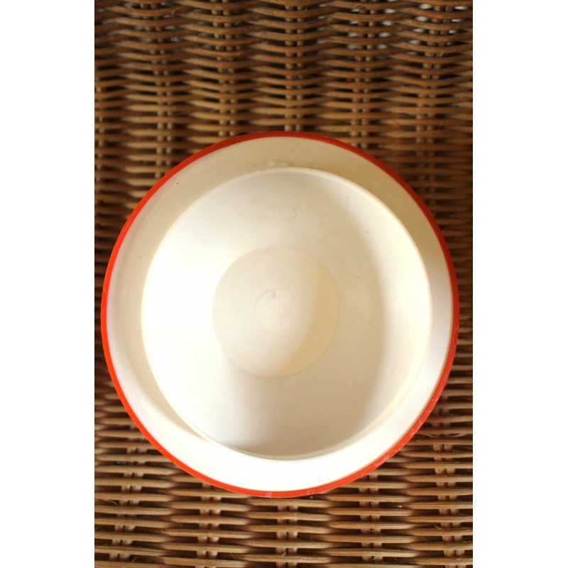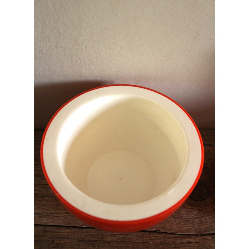 Pomme à glaçons Plastique Seau à glace Rouge orangé Belle pièce seventies vintage Une marque sur le bouchon pour charme et authenticité h 16 x d 15,5 cm