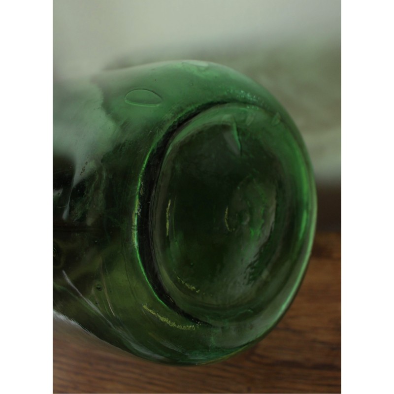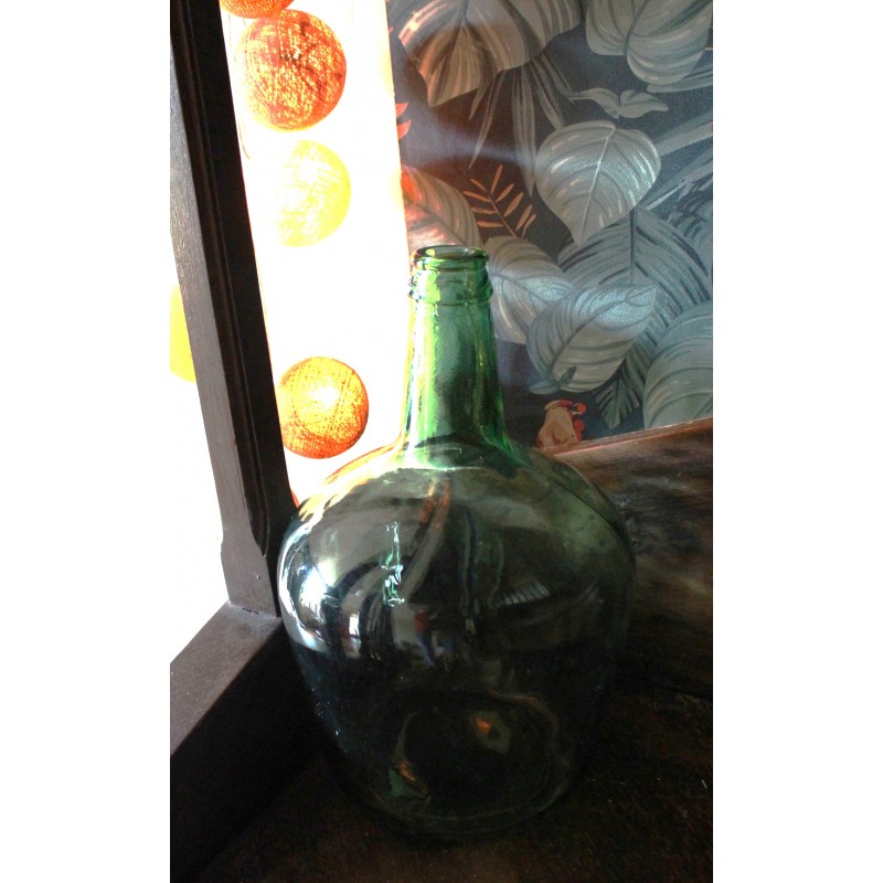 Dame- Jeanne Bonbonne Collection Viresa Verre vert foncé h 31,8 x d 20 cm Bel état général Quelques traces pour charme et authenticité Seule, en accumulation Déco, fleurs séchées, guirlande lumineuse, selon vos envies.