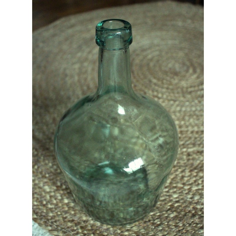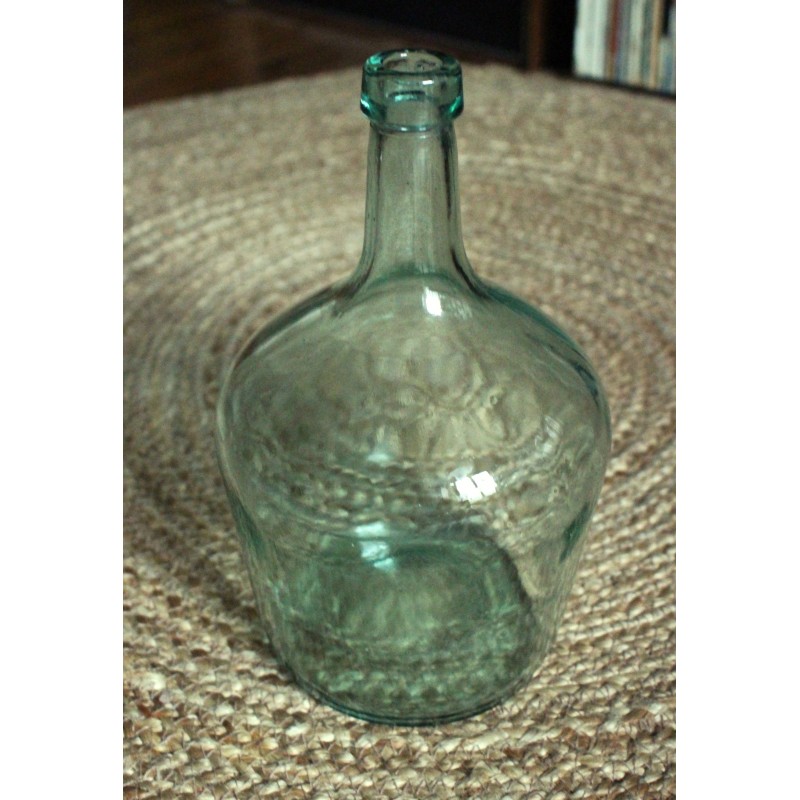 Dame Jeanne Ravissante Bonbonne Verre Vert transparent 2 L Très bel état h 26,7 x d 16 cm Seule ou en accumulation Fleurs séchées, guirlande lumineuse... Selon vos envies.
