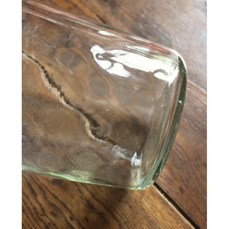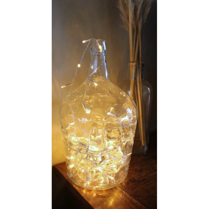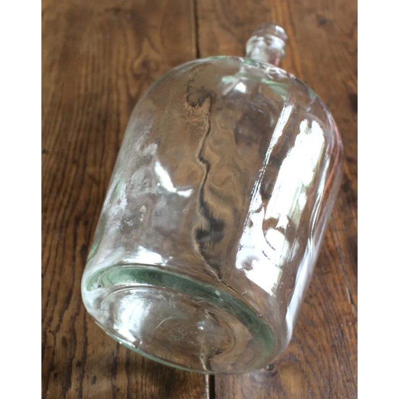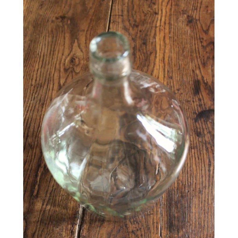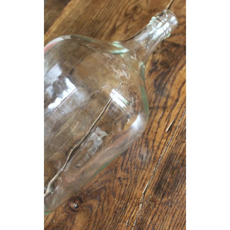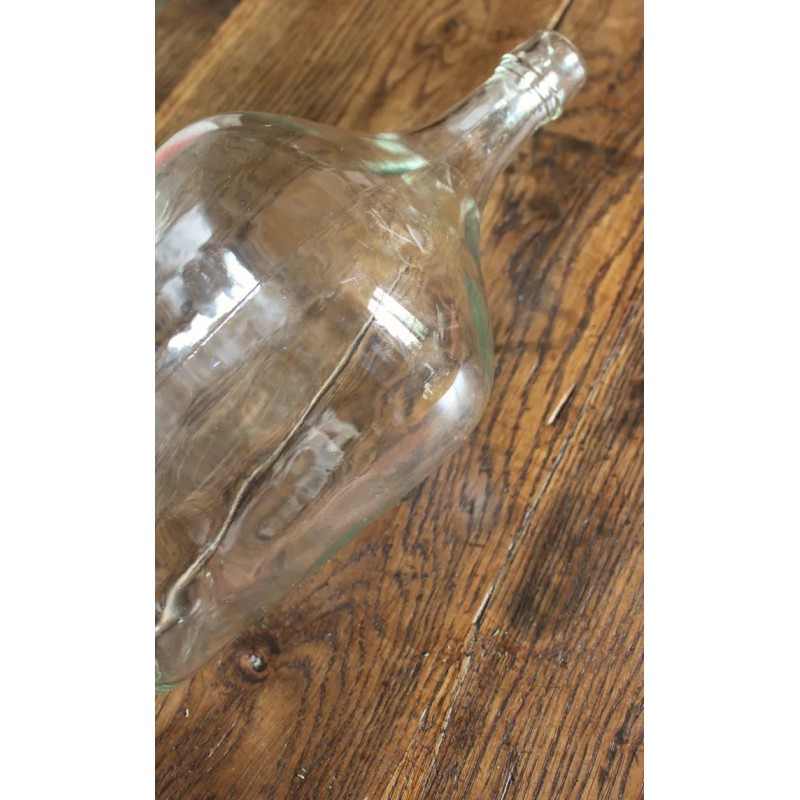 Dame Jeanne Bonbonne Verre transparent Belle pièce ancienne h 36, 2 X d 20, 5 cm Quelques traces pour charme et authenticité Seule ou en accumulation Graminées, branchages, guirlande lumineuse, selon vos envies.