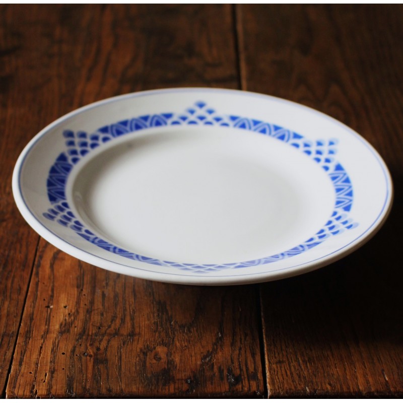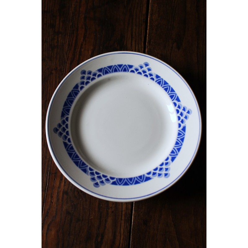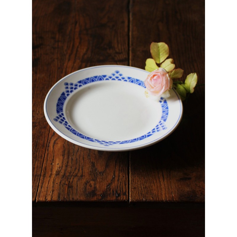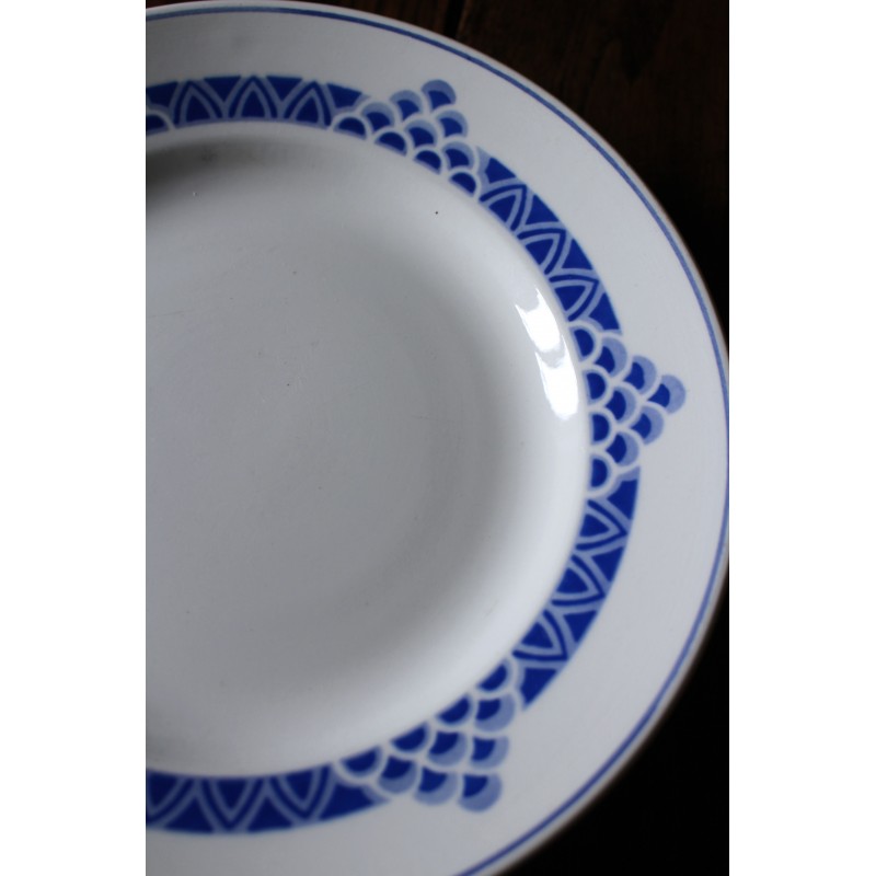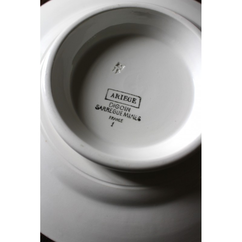 Coupe sur pied Piédouche Faïence Ecailles Bleu Belle pièce ancienne Beau glacis Collection Ariège Digoin Sarreguemines Blason estampille h 4,3 x d 22,8 cm
