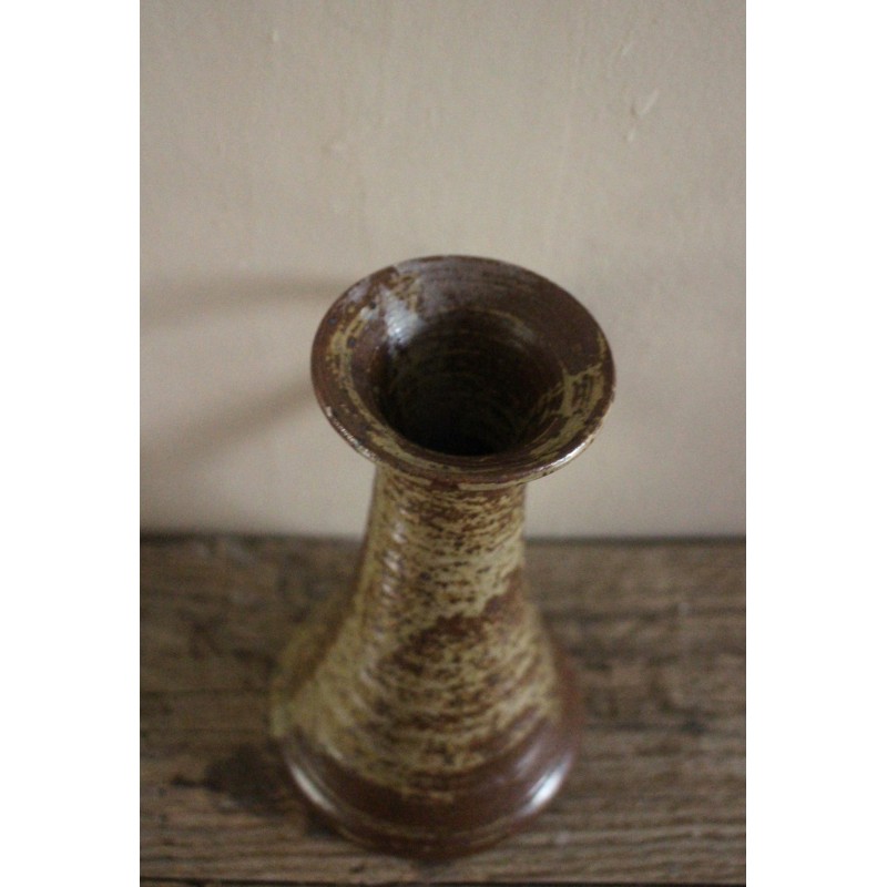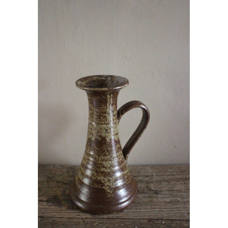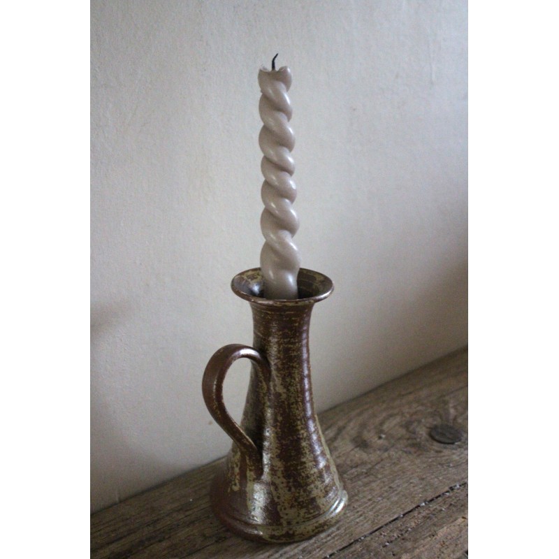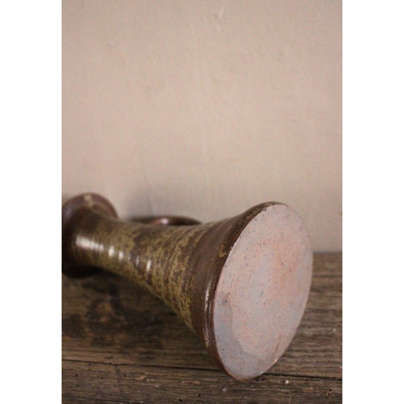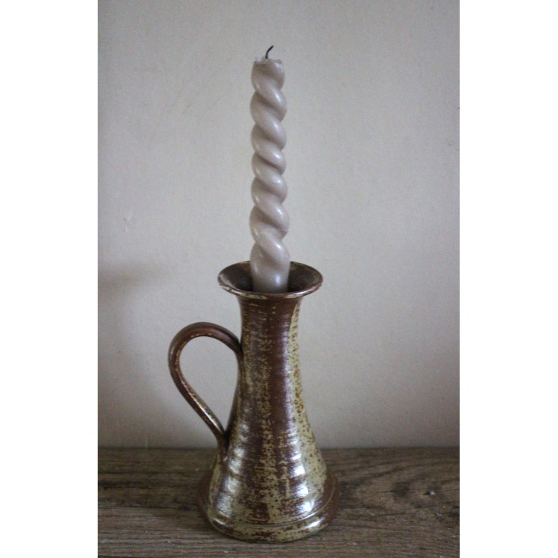 Bougeoir en grès émaillé pyrité anse vintage