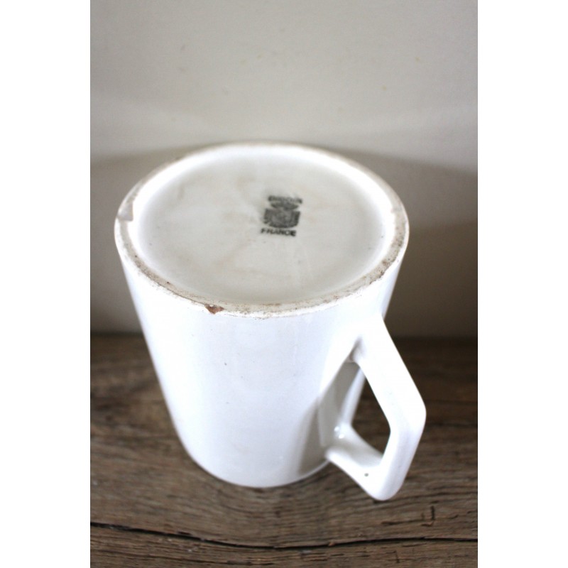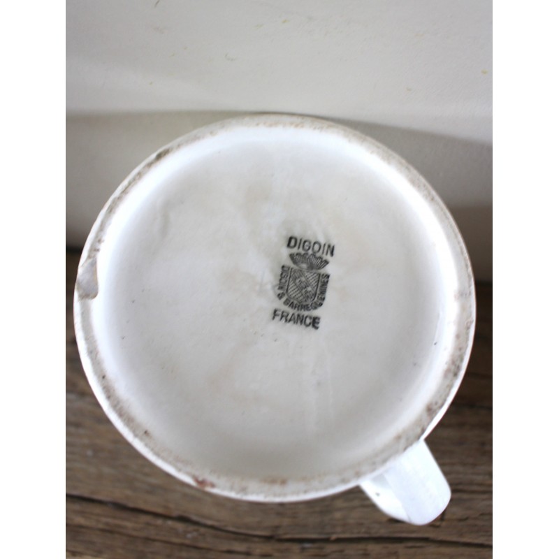 Pichet Carafe Faïence Blanc Digoin Sarreguemines Blason estampille Bel état général Quelques marques du temps pour charme et authenticité Un manque sans danger sous le bec verseur h 13,9 x L 17 x d 9,7 cm