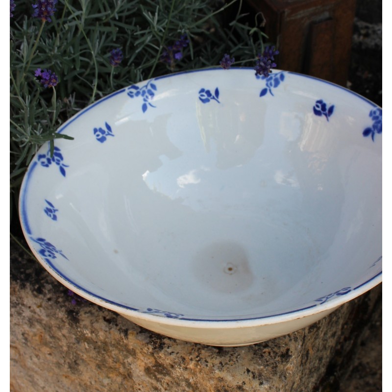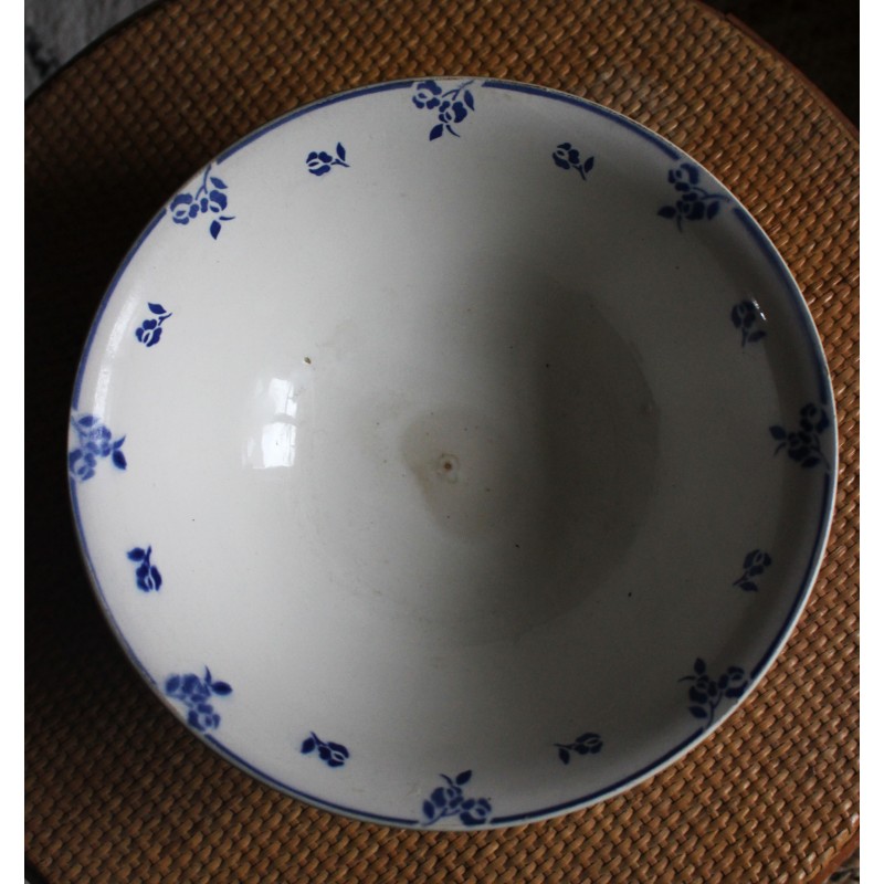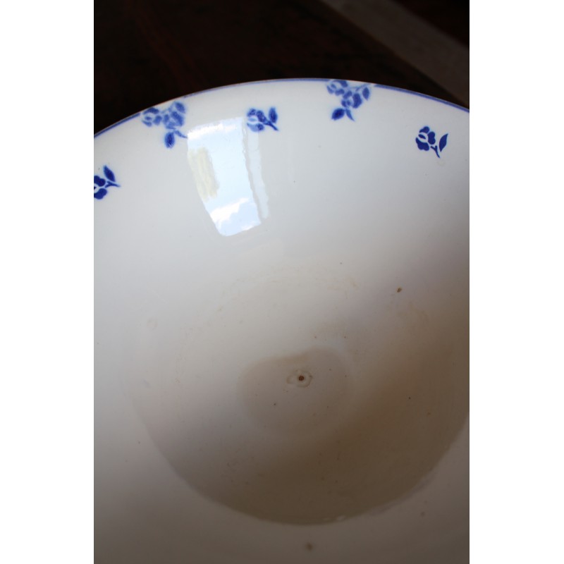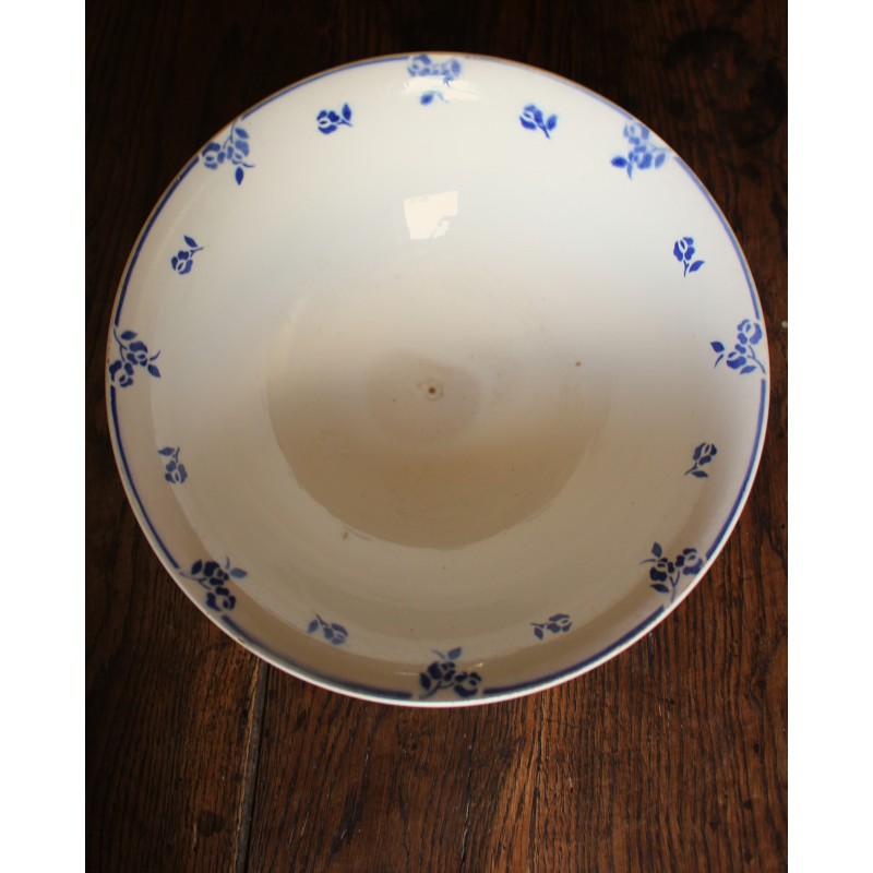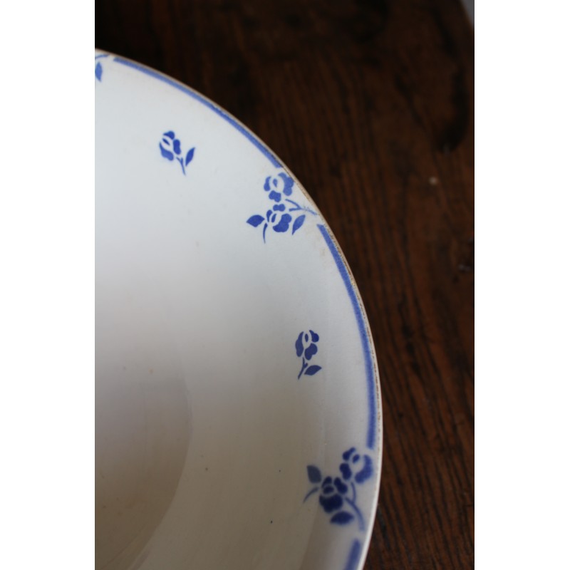 Saladier Faïence Sur pied Bleu Petits Fleurs Digoin Blason estampille Ravissante pièce Art Deco Bel état général Une piqûre du temps au fond h 10,1 x d 27,8 cm