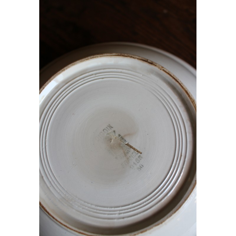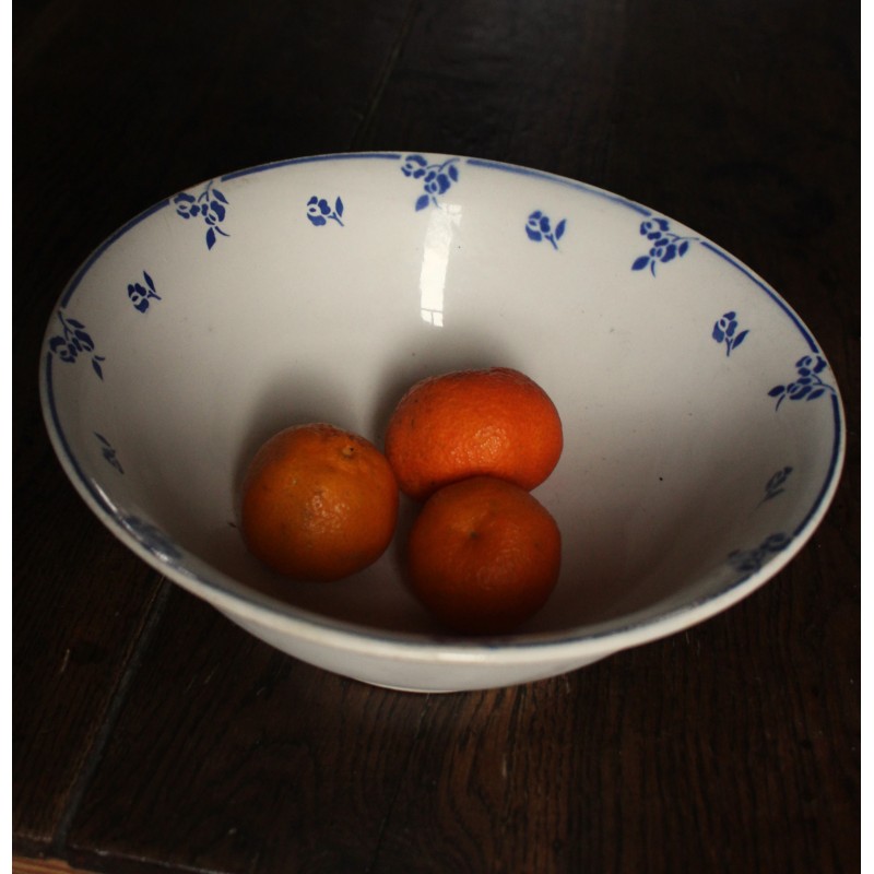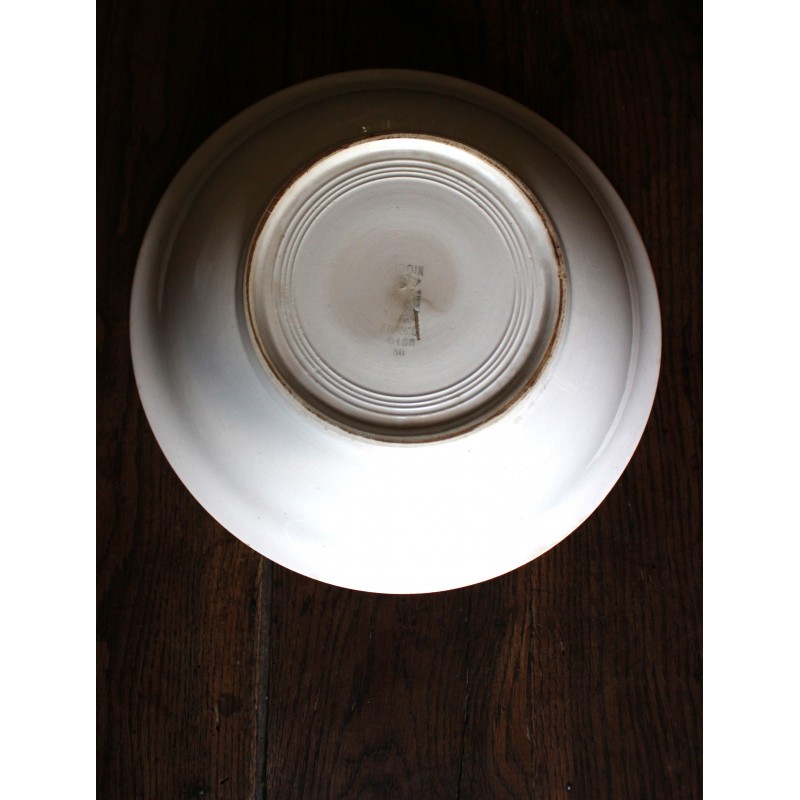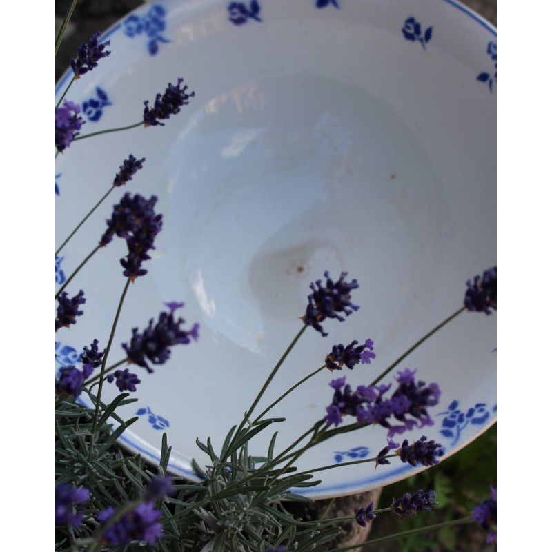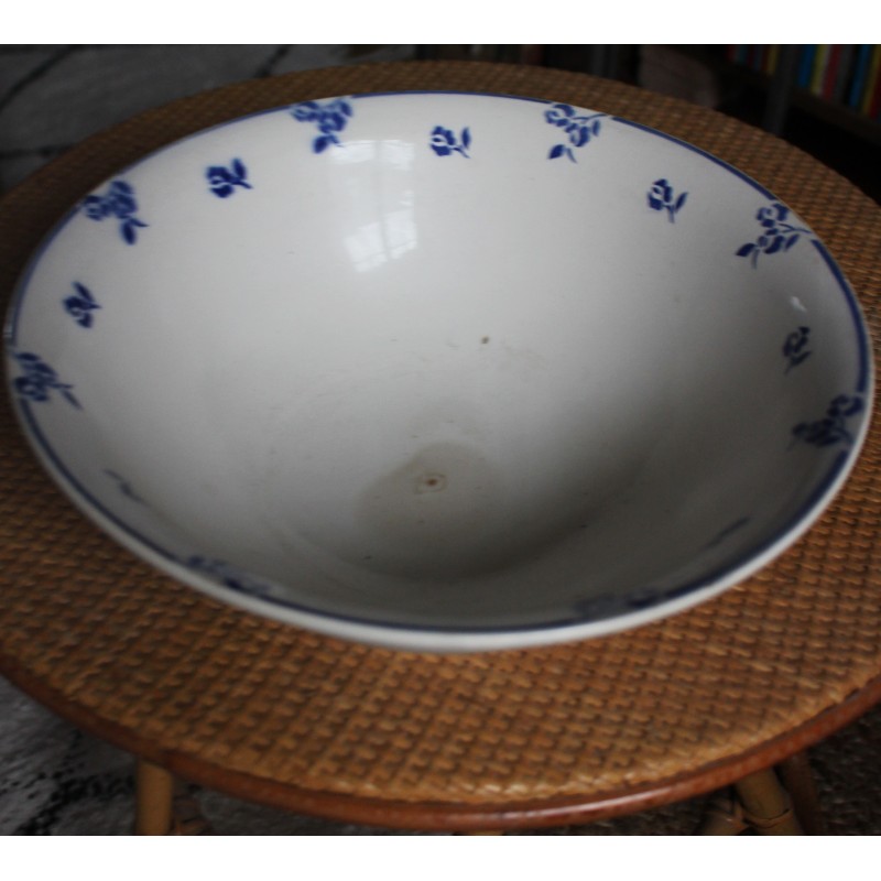 Saladier Faïence Sur pied Bleu Petits Fleurs Digoin Blason estampille Ravissante pièce Art Deco Bel état général Une piqûre du temps au fond h 10,1 x d 27,8 cm