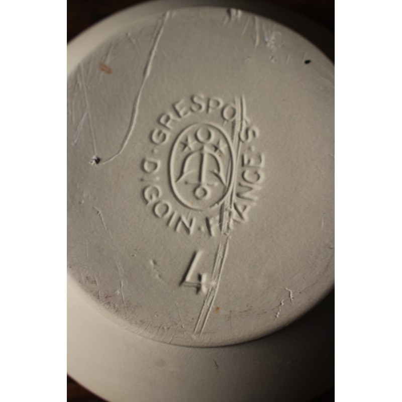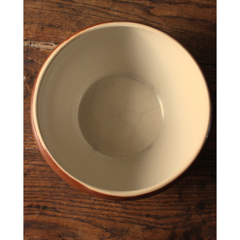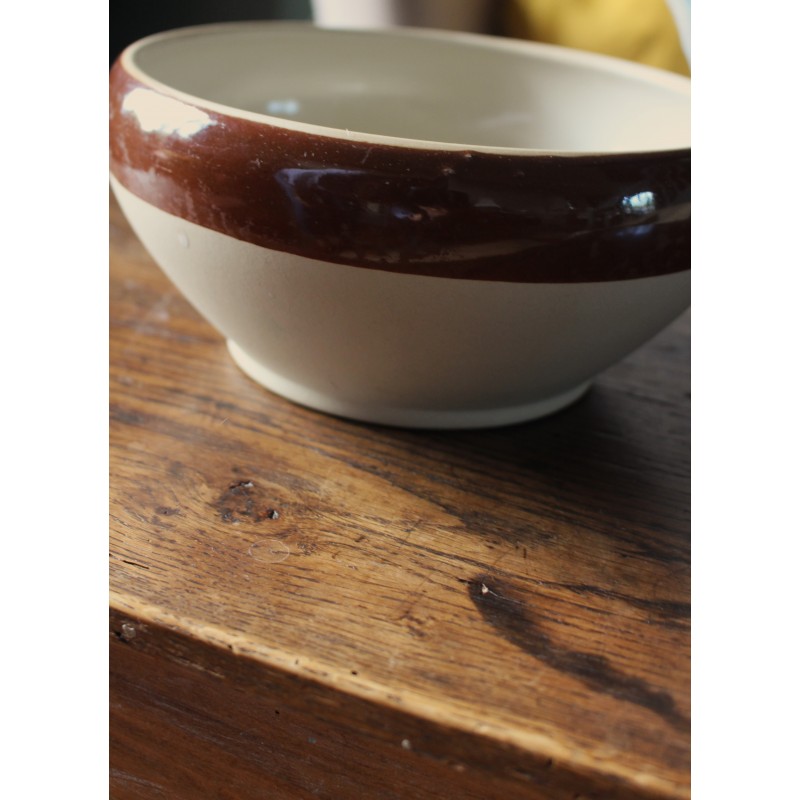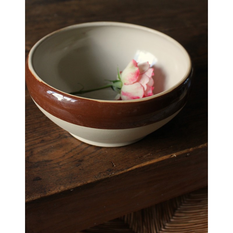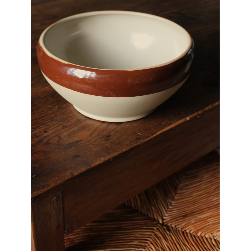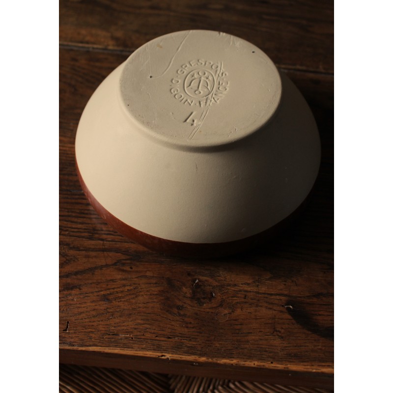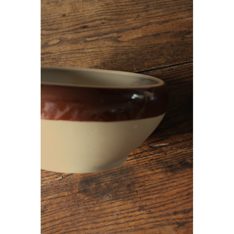 Saladier Grès Belle pièce vintage Intérieur et bord brun vernissés Bicolore grège Digoin Blason estampille Marque de fissure, sans danger, sans profondeur h 9,9 x d 20,8 cm