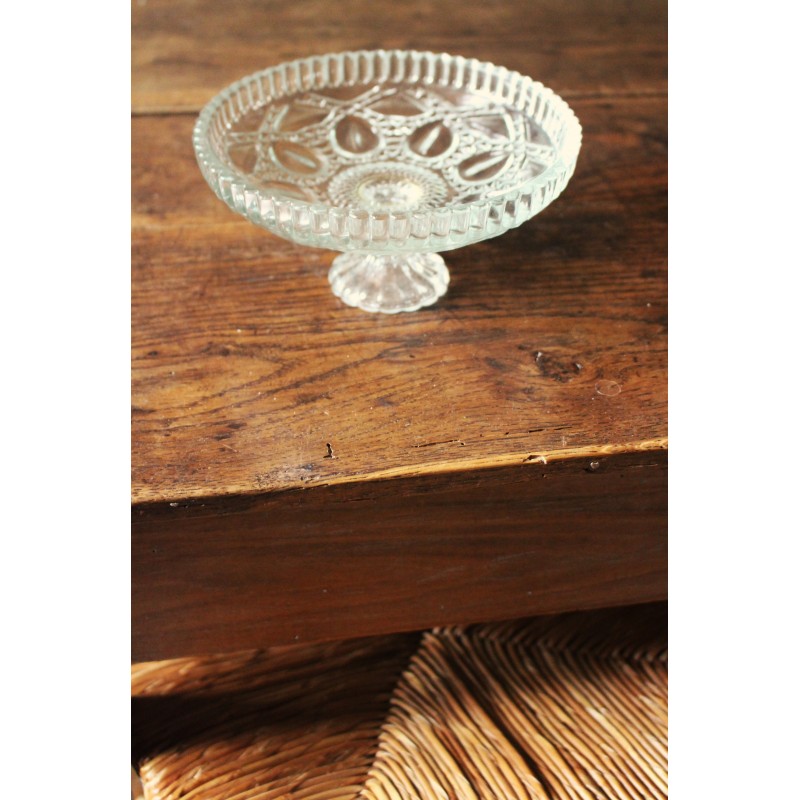 Petite Coupe sur pied Verre transparent Ciselé Belle pièce ancienne Très bon état Petite trace de colle h 7,8 x d 16 cm Fruits, déco, apéritifs, selon vos envies.