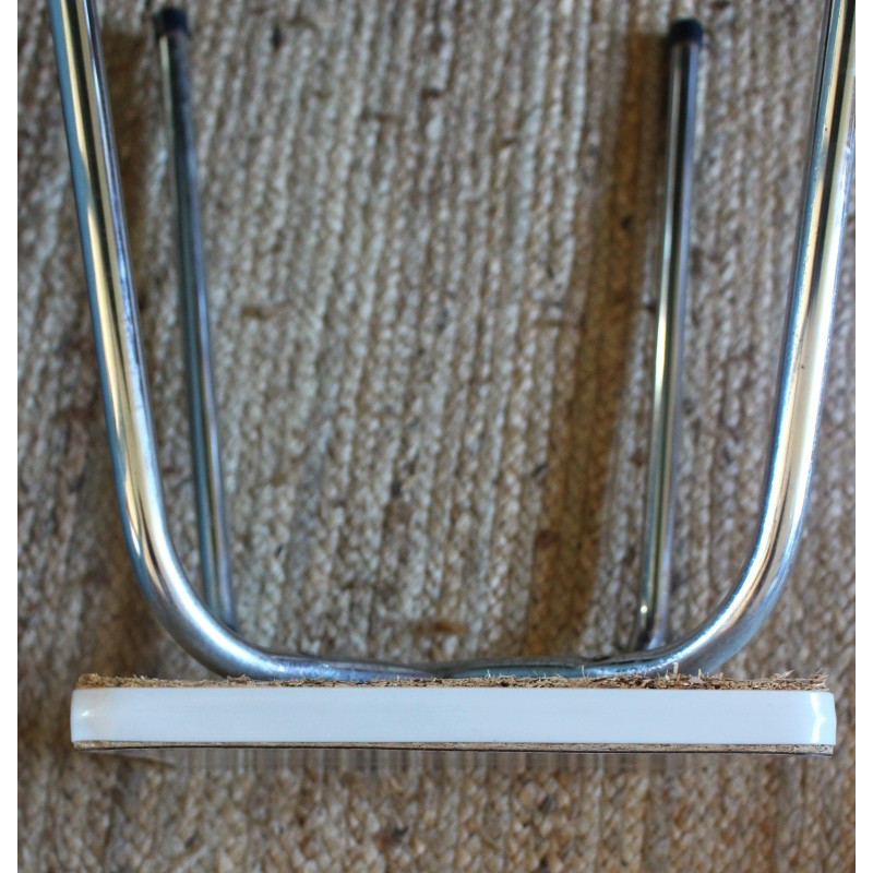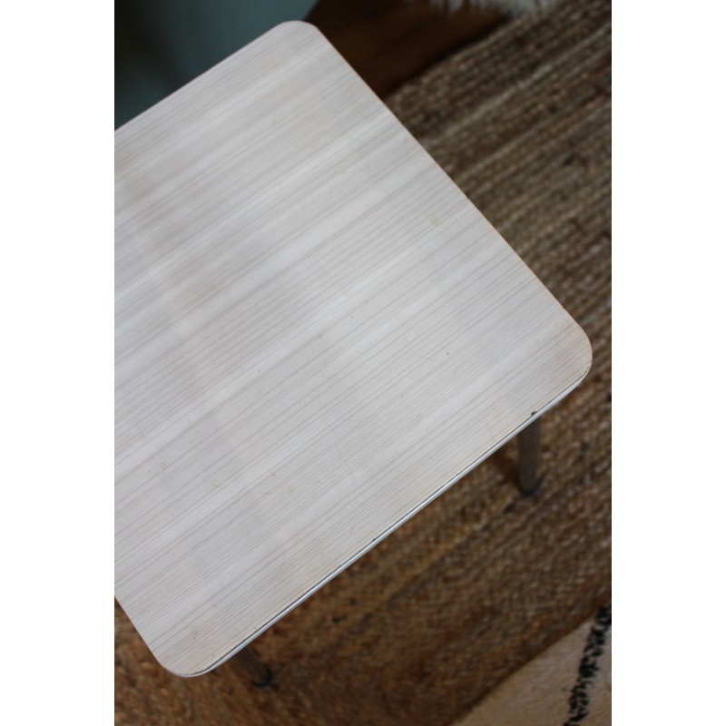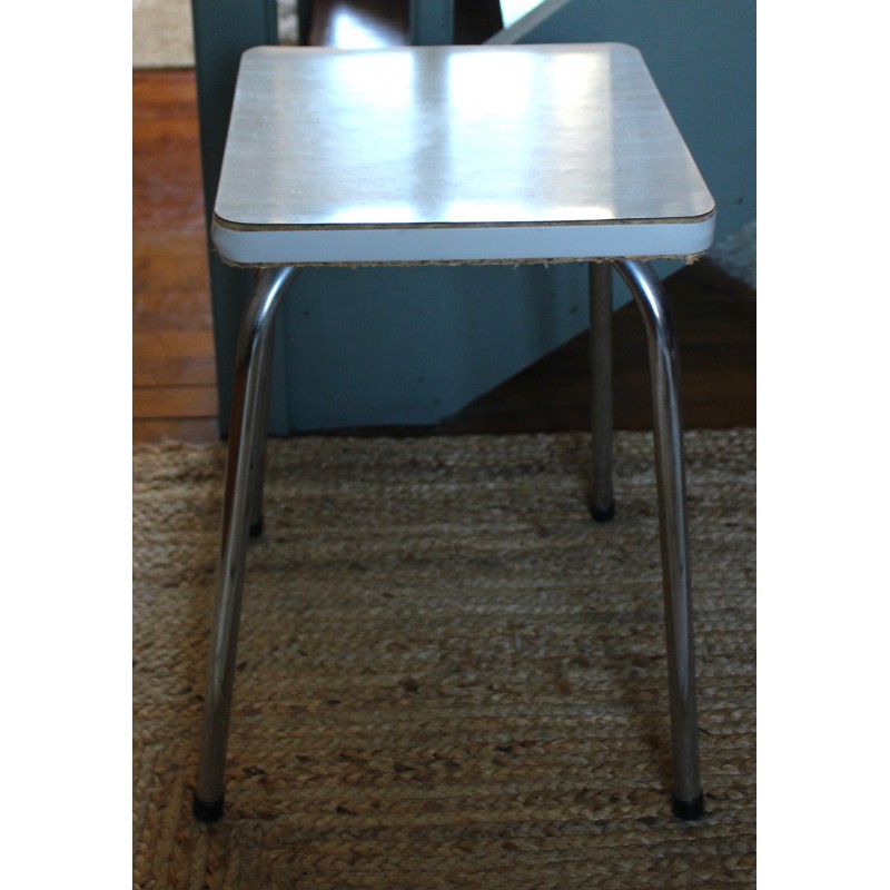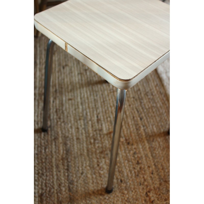 Tabouret Formica Blanc gris fines rayures Belle pièce vintage Quelques marques et manques pour charme et authenticité, visibles sur les clichés 4 embouts d'origine Dessous liège Stable c 27,2 x h 45,4 cm