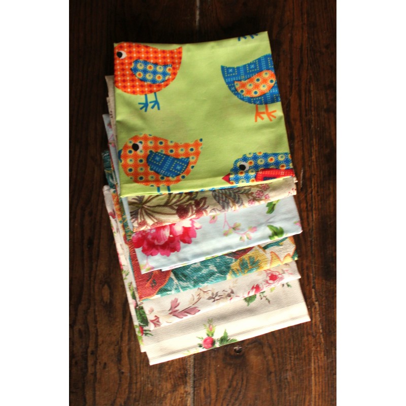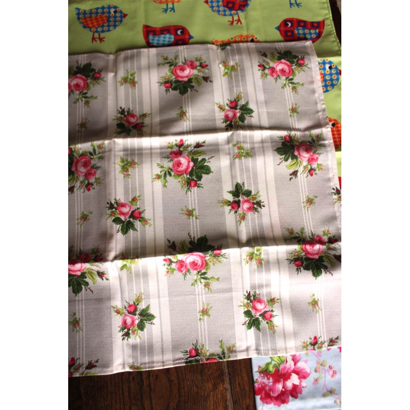 Lot 6 serviettes de table Fleurs Oiseaux dépareillé création