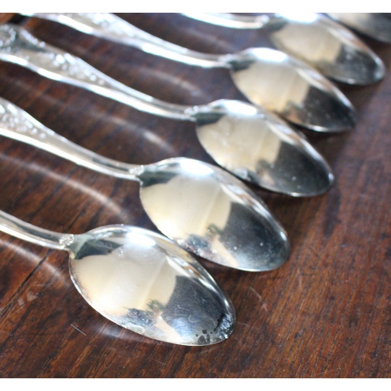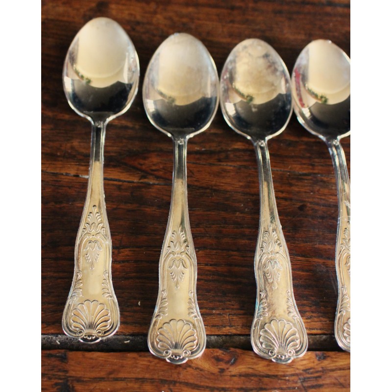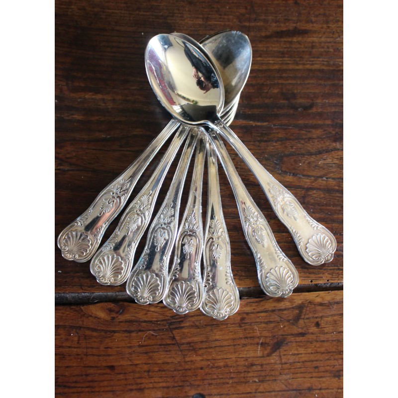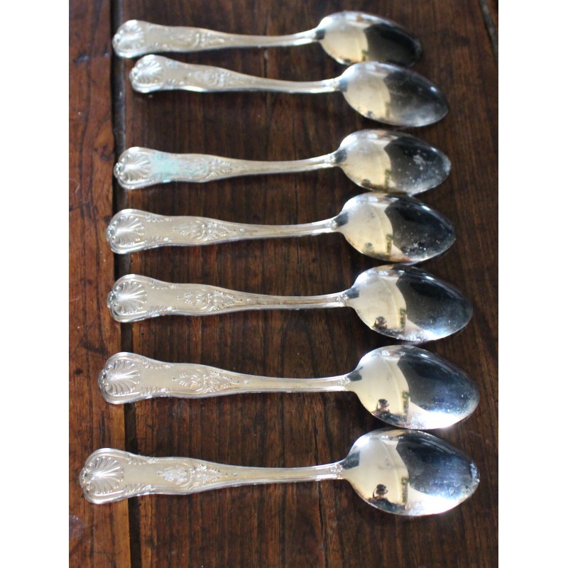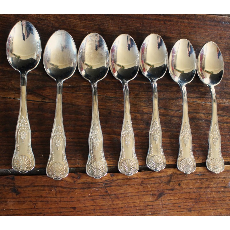 Un lot 6 + 1 cuillères à soupe Métal Lumineux Motif coquille à la base Belles pièces anciennes Quelques marques pour charme et authenticité L 19,9 x l 4,6 cm
