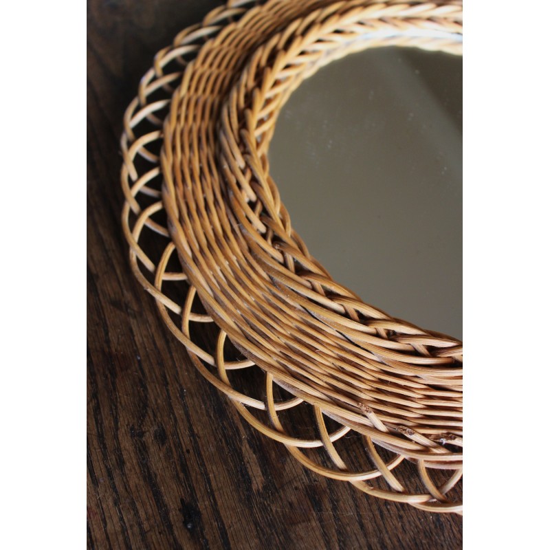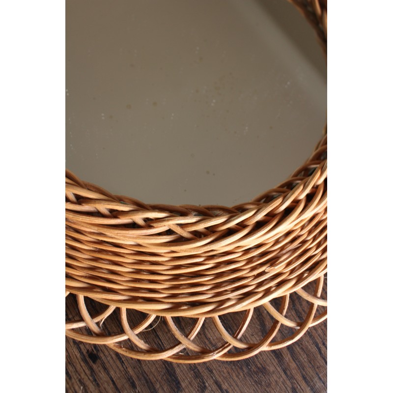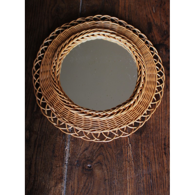 Miroir ancien rond rotin