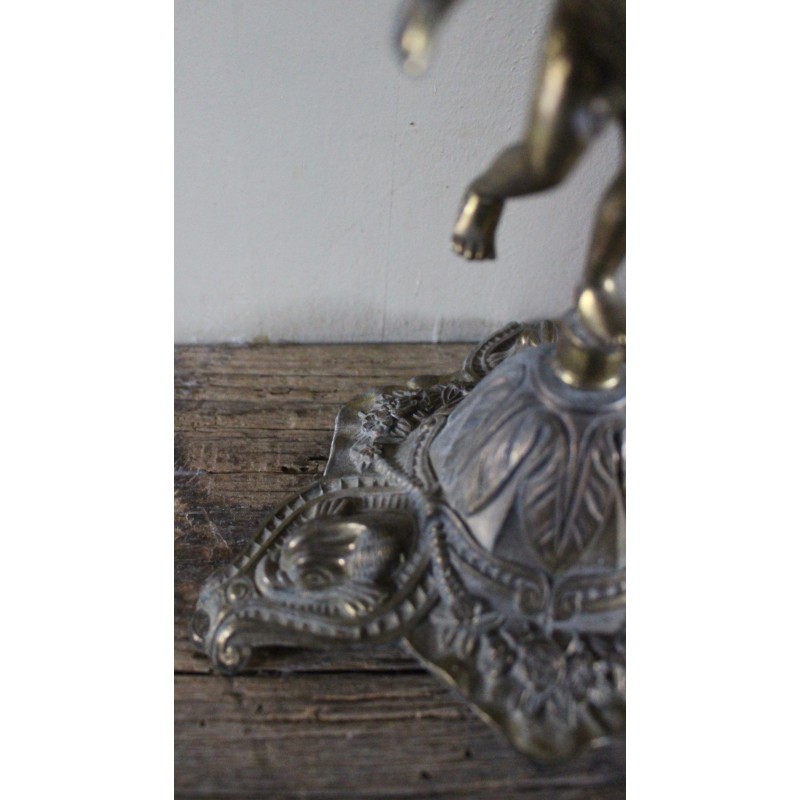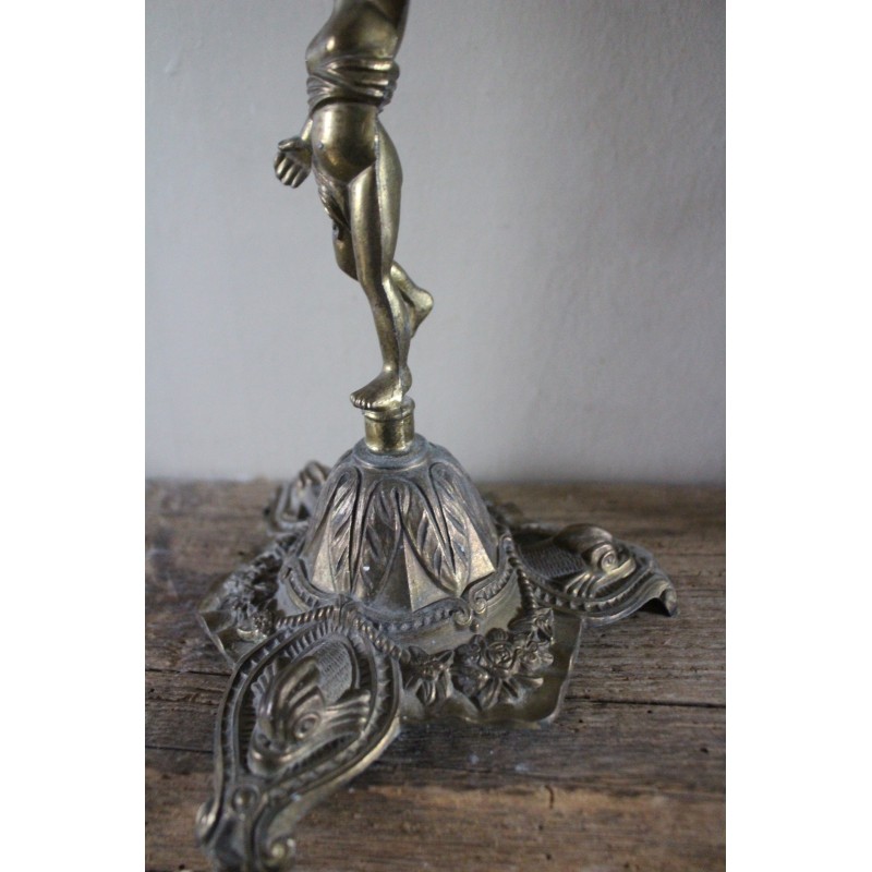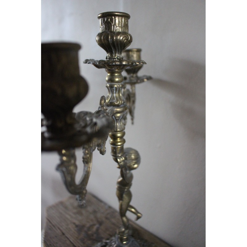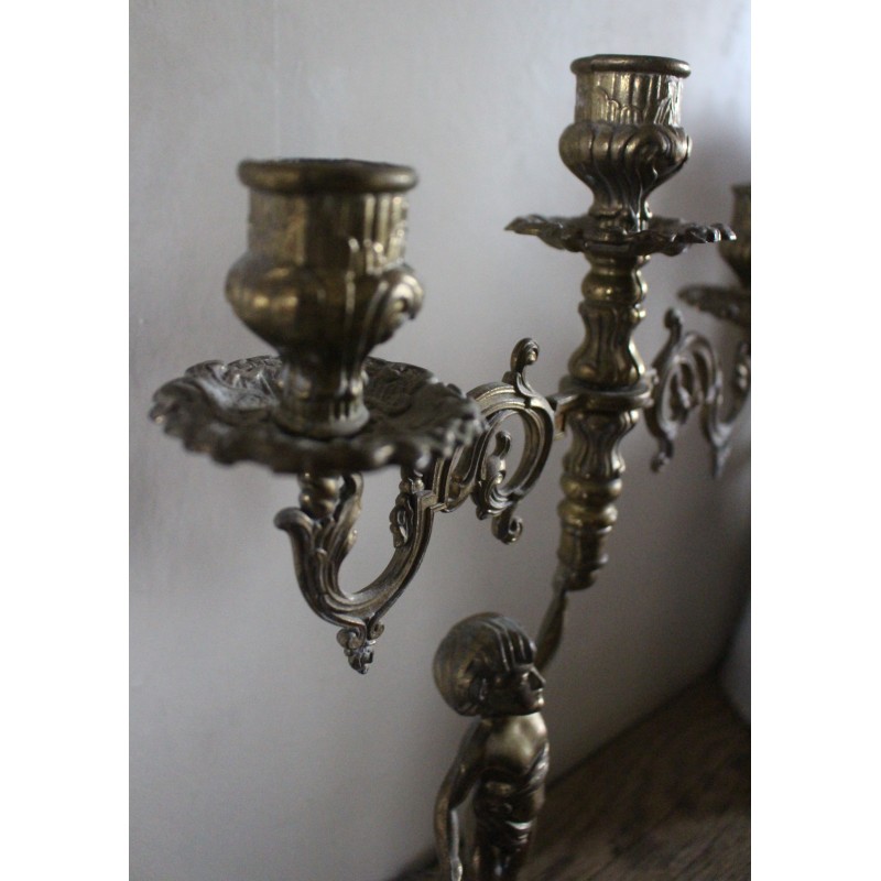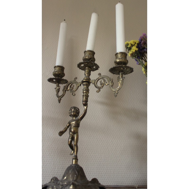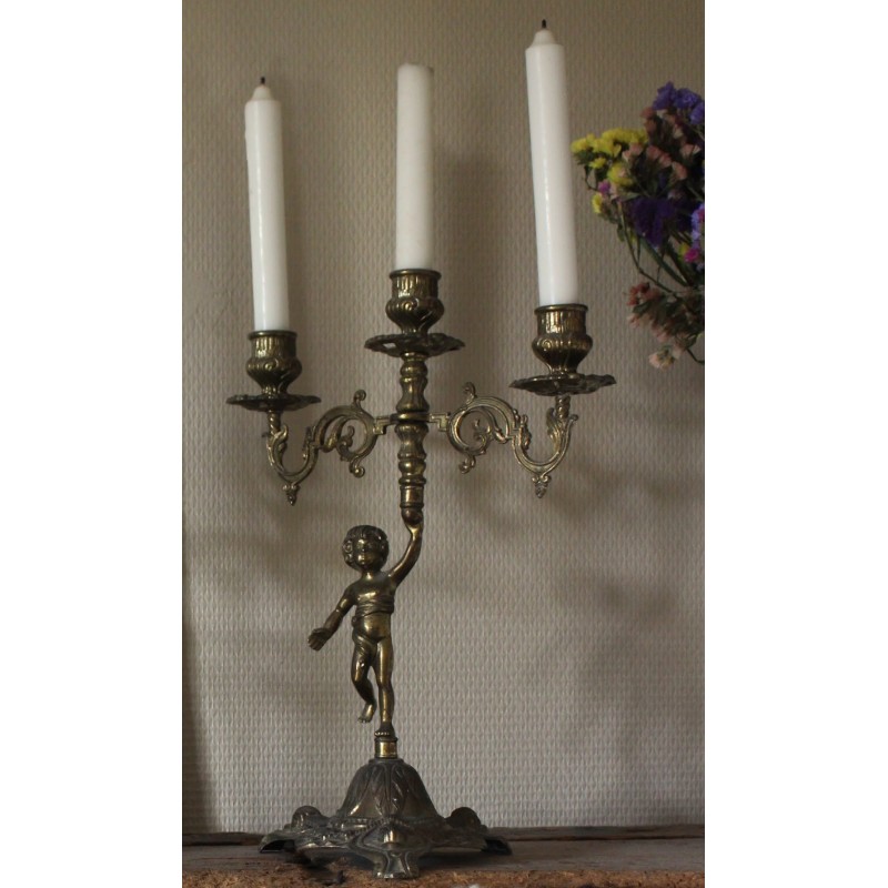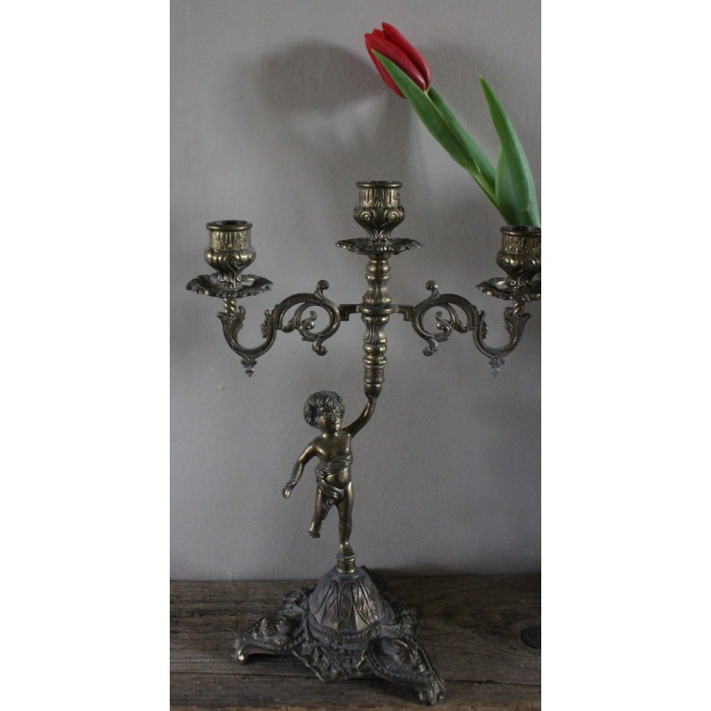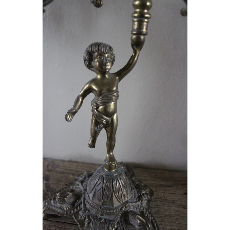 Chandelier Régulé Patine & Dorure Belle pièce ancienne Tripode Pied décoré Ange, angelot, chérubin Trois binets pour bougie cierge (2,5 cm) Volutes & colerettes h 35,4 x L 25,7 x p 16 cm Se dévisse pour un nettoyage plus facile Traces et manques pour charme et authenticité