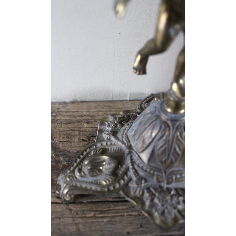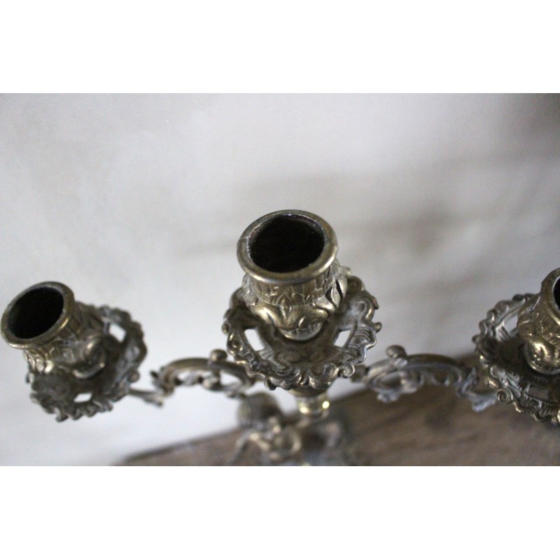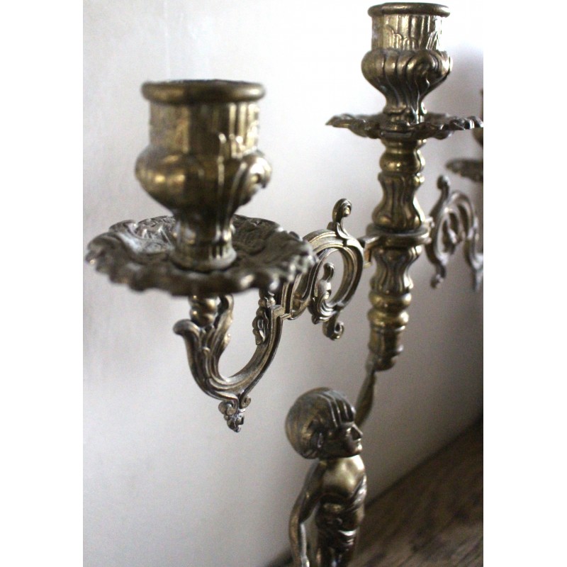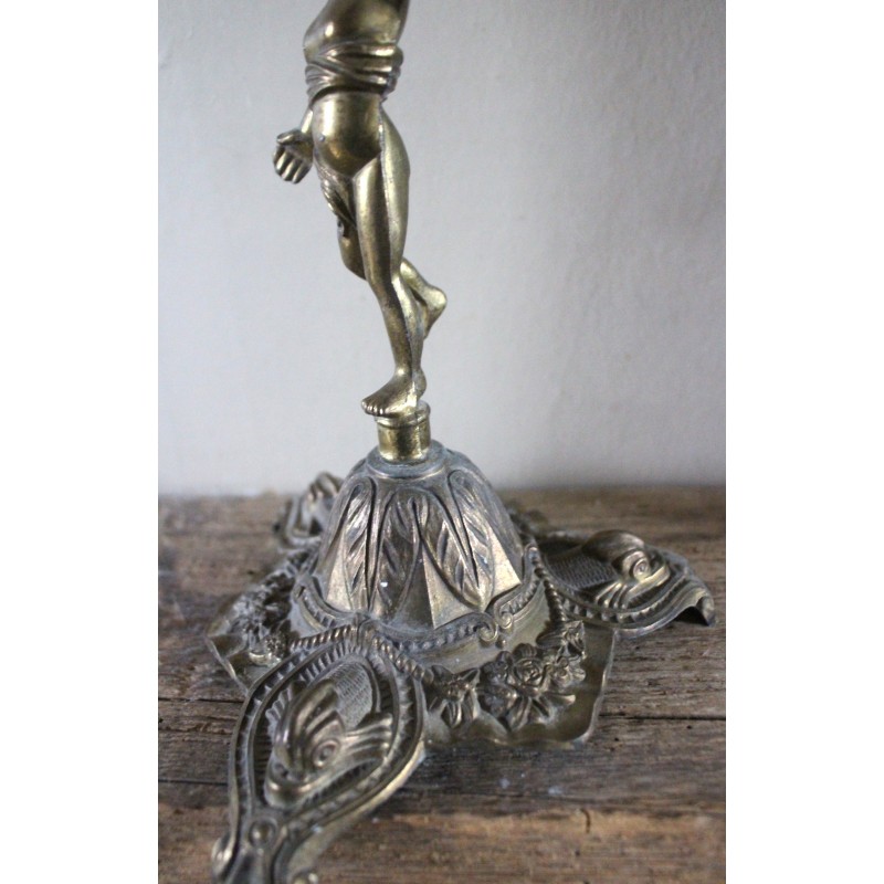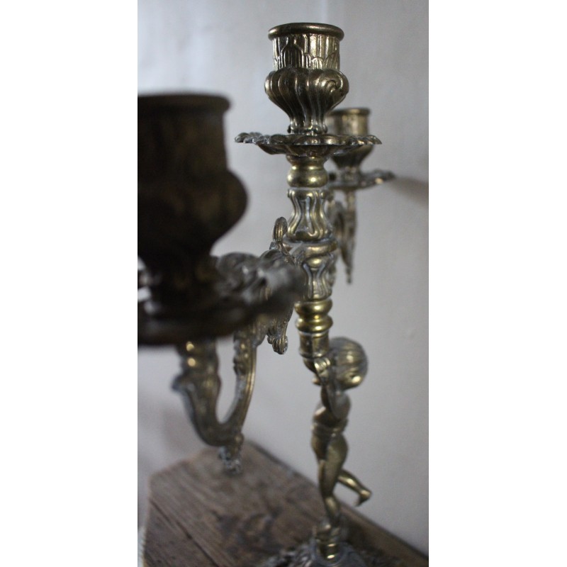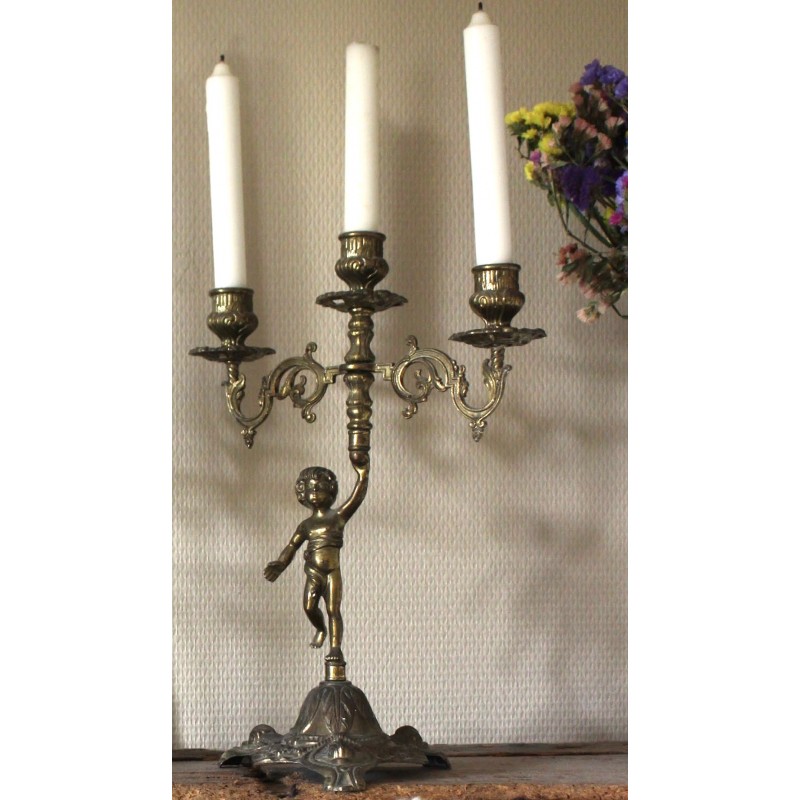 Chandelier Régulé Patine & Dorure Belle pièce ancienne Tripode Pied décoré Ange, angelot, chérubin Trois binets pour bougie cierge (2,5 cm) Volutes & collerettes h 35,4 x L 25,7 x p 16 cm Se dévisse pour un nettoyage plus facile Traces et manques pour charme et authenticité
