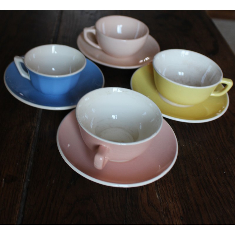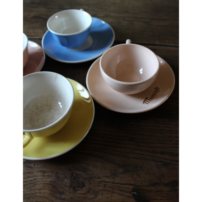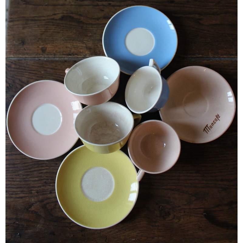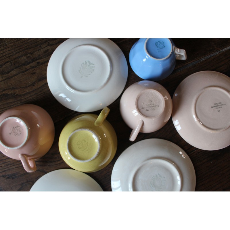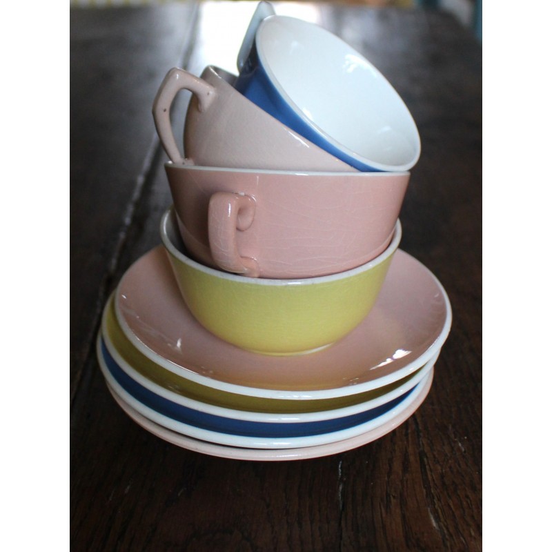 Un lot 4 tasses thé café soucoupes bleu jaune rose Digoin Villeroy