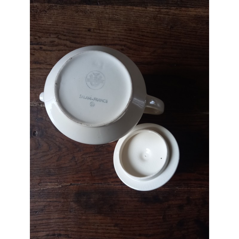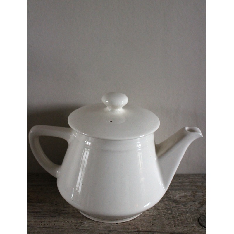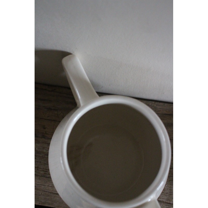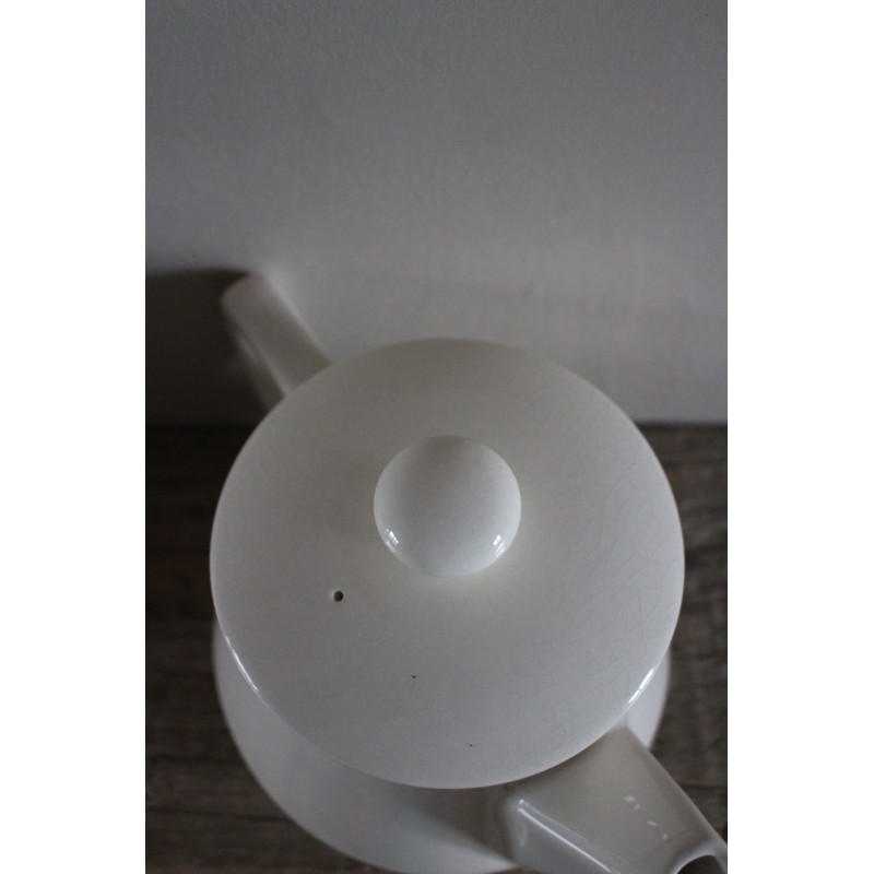 Théière Faïence Blanc cassé Belle pièce ancienne Beau glacis, pas de manque, une marque au fond Blason estampille Villeroy & Boch h 14 x L 23 x d 9,2 cm