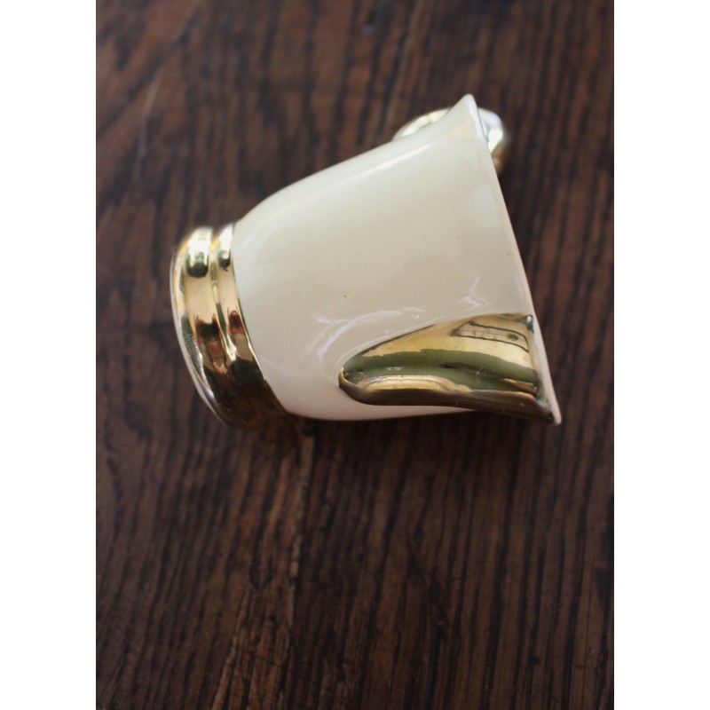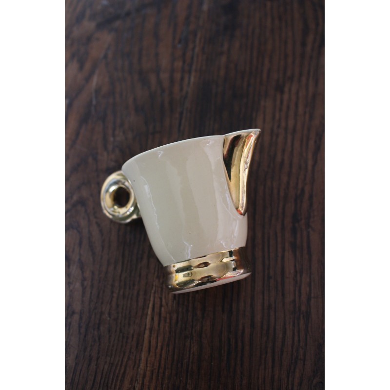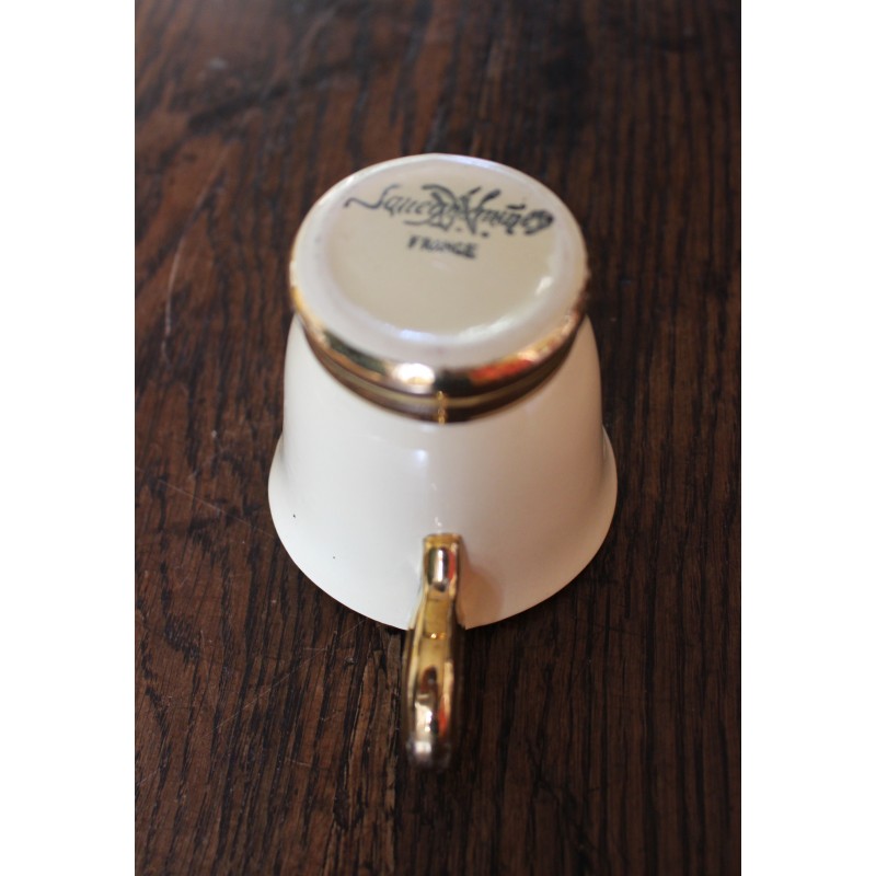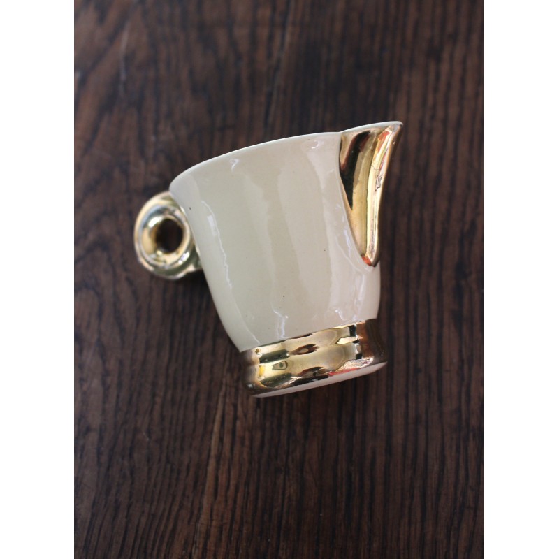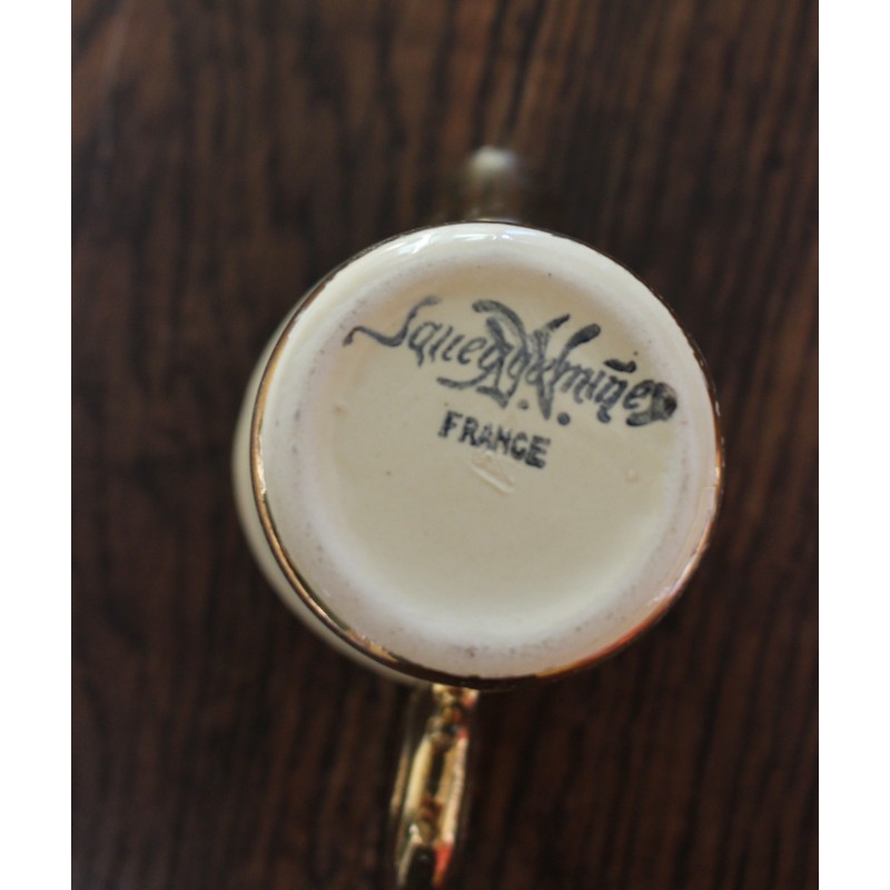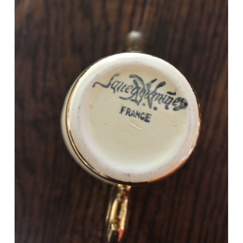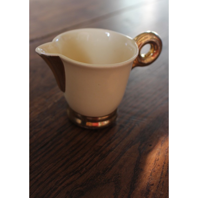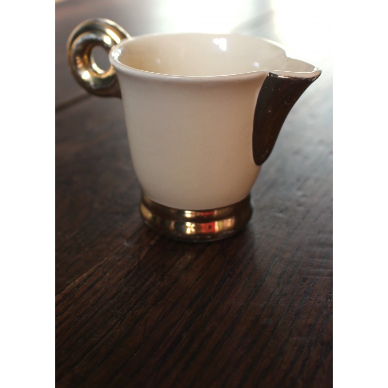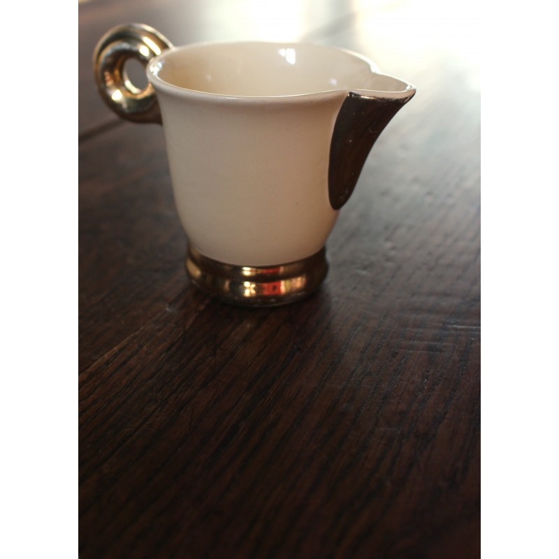 Pot à lait Rare pièce ancienne Fin XIX ème faïence écrue Dorure Blason estampille Sarreguemines Quelques manques pour charme et authenticité Bec verseur Anse ronde h 7,5 x l 12 x d 7,5 cm