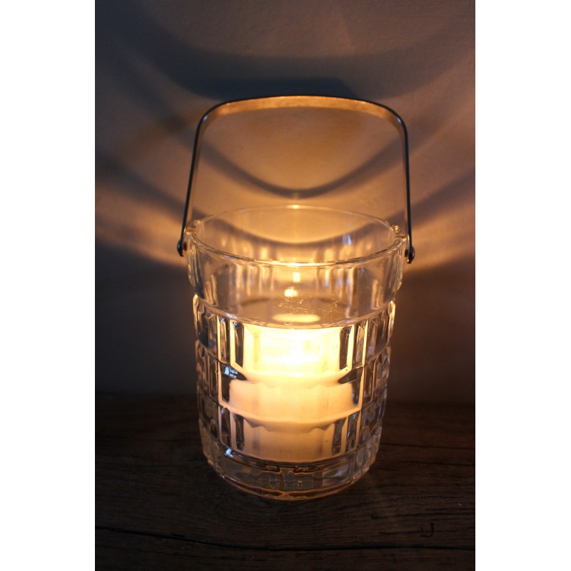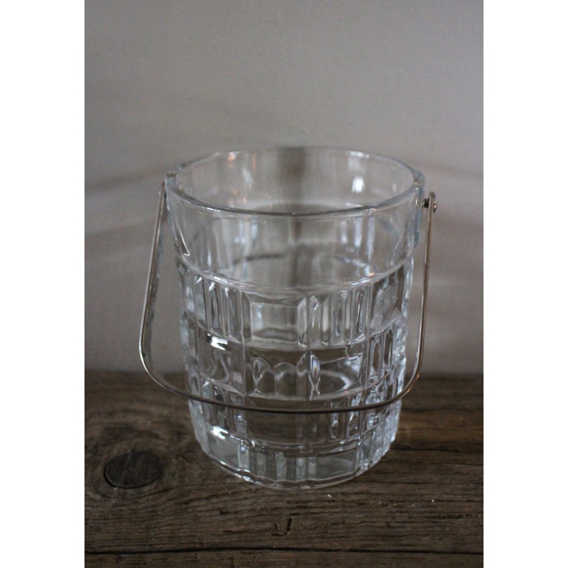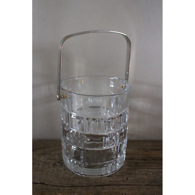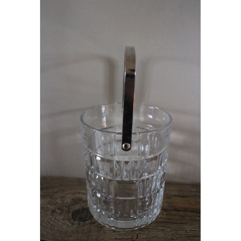 Seau à glace Verre Motifs géométriques Belle pièce vintage Icône des séries des années 80 Anse métal h 13,2 x d 10,8 cm Glaçons, couverts, bougie, selon vos envies.