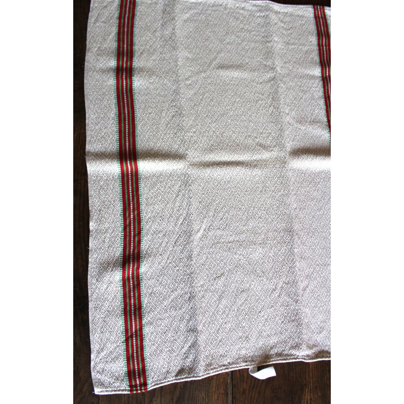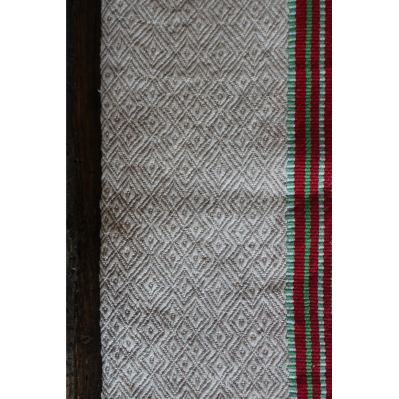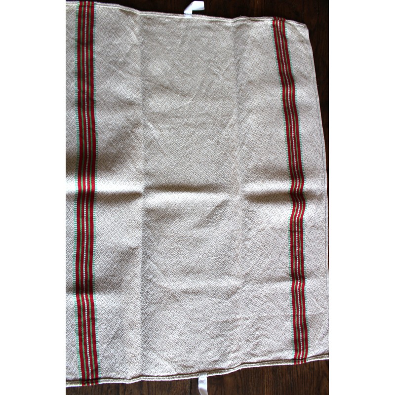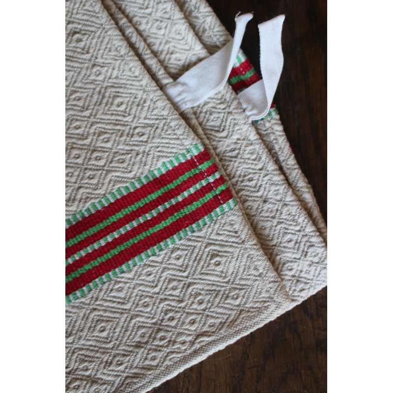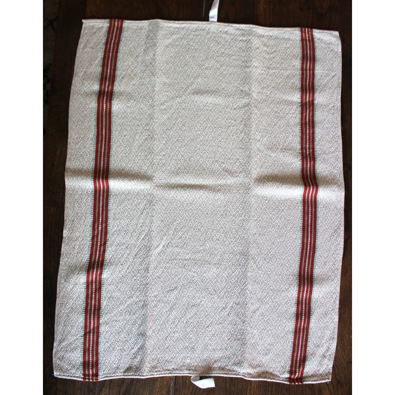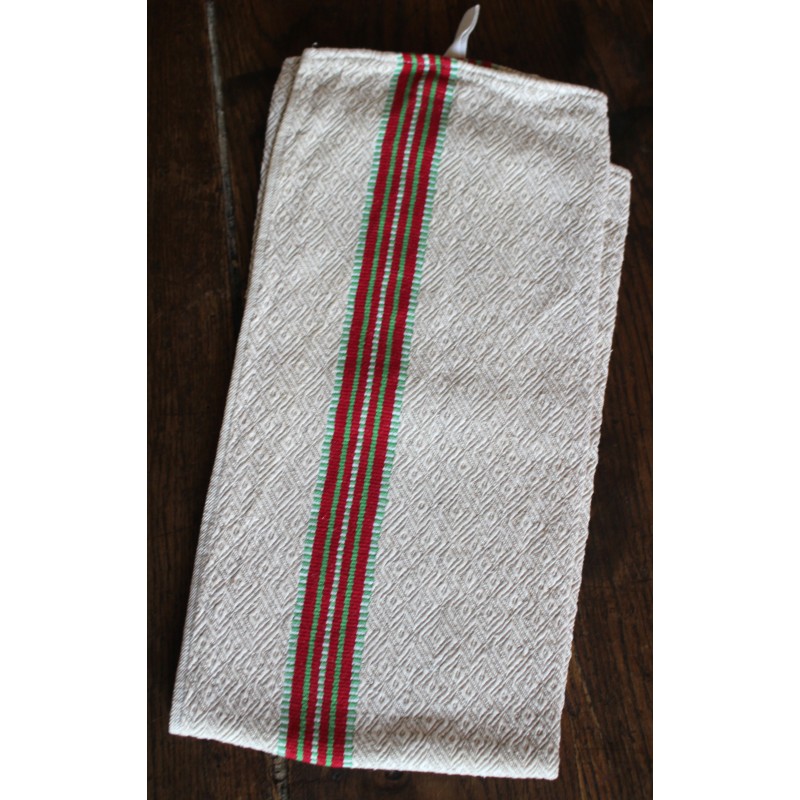Torchon ancien chevrons bandes rouge vert