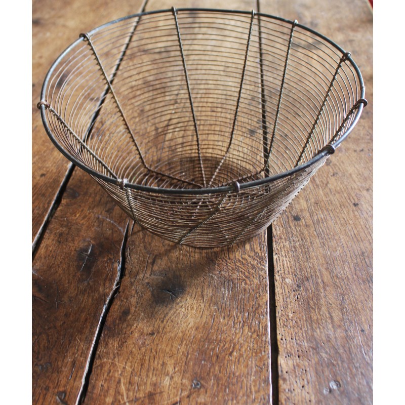 Corbeille Rare pièce ancienne indus' Ronde Métal fil de fer Pas symétrique A modeler selon vos envies Des marques du temps pour charme et authenticité h 17,5 x d 30 cm