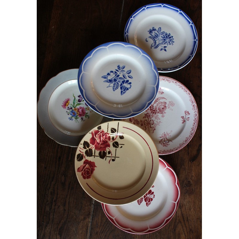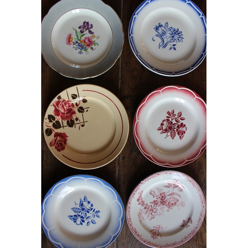 6 assiettes plates dépareillé Marsac Canebière Fontanges Digoin Sarreguemines