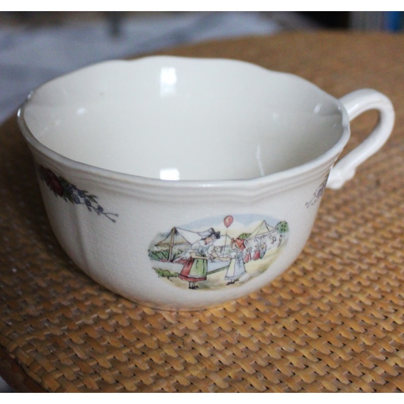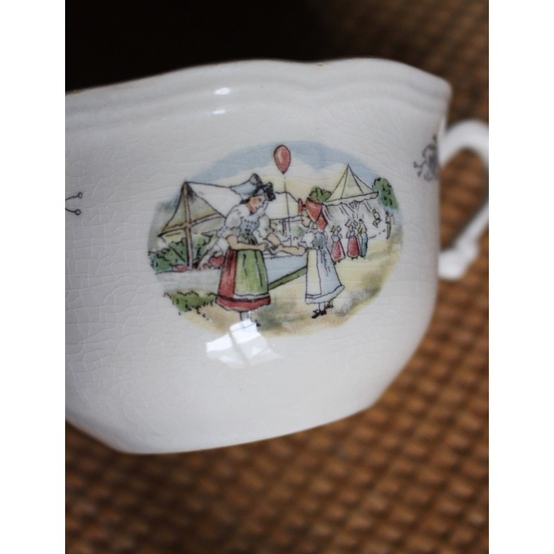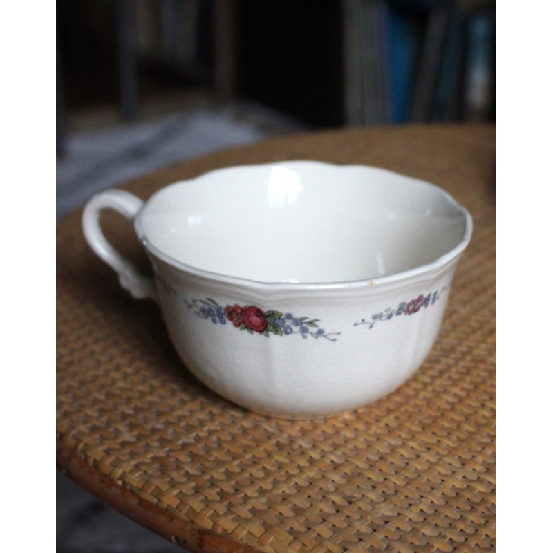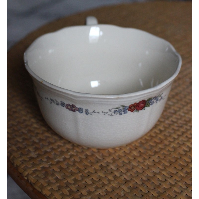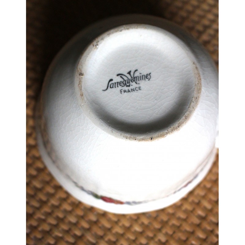 Grande Tasse Format bol Une anse Faïence écrue Fleurs Médaillon Alsace Blason Estampille Sarreguemines 1920-1950 Très bon état h 6,8 x L 14,5 x d 11,8 cm